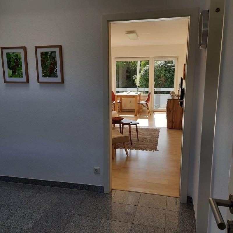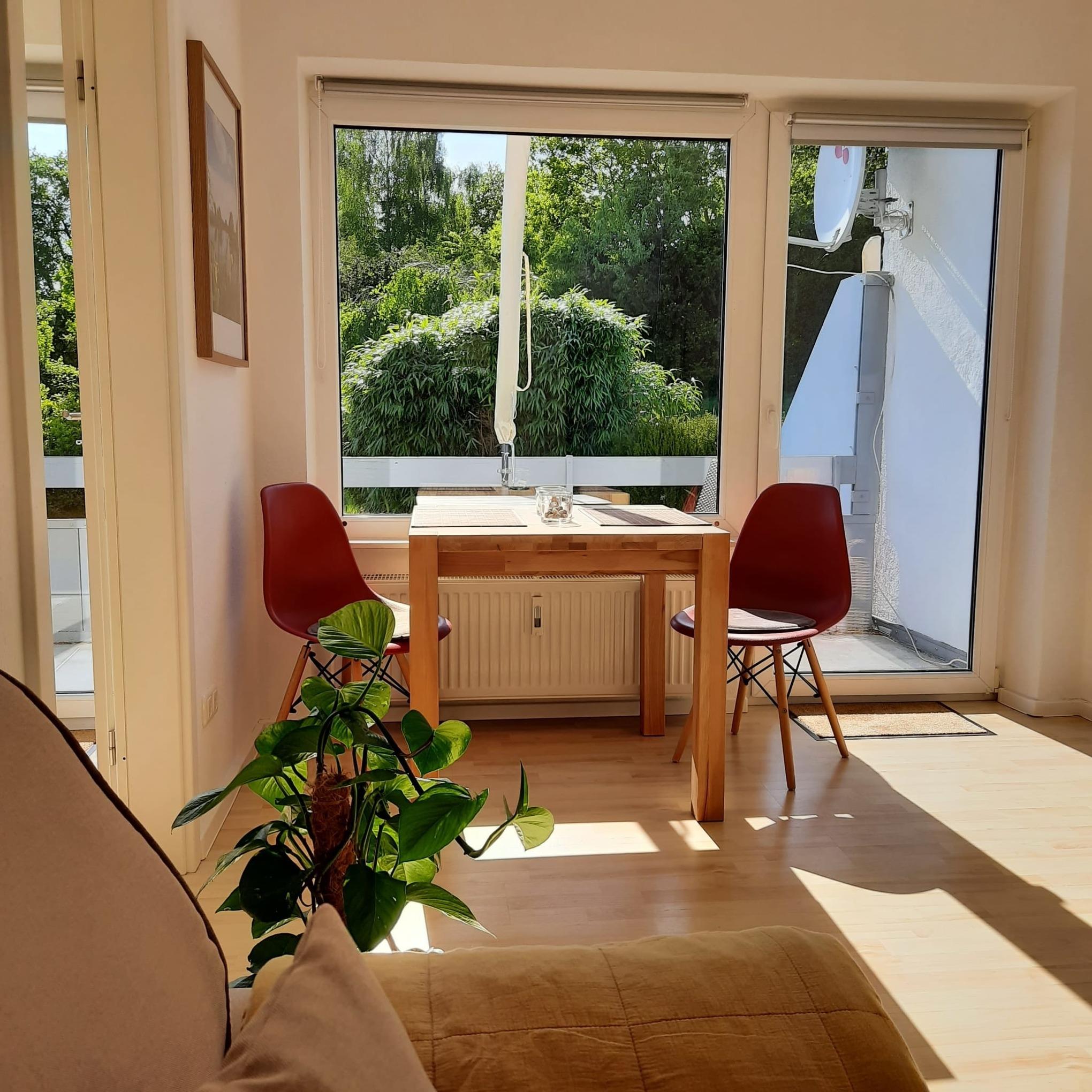 In unserer barrierefreien 2- Zimmer Ferienwohnung wohnen Sie komfortabel und gemütlich mit vollausgestatteter Küche und einem modernen Duschbad. Im Wohnzimmer befindet sich ein großes Schlafsofa (2m x 1,6m). Auf dem sonnigen, eigenen Balkon genießen Sie den unverbauten Blick in unseren großzügigen Garten.