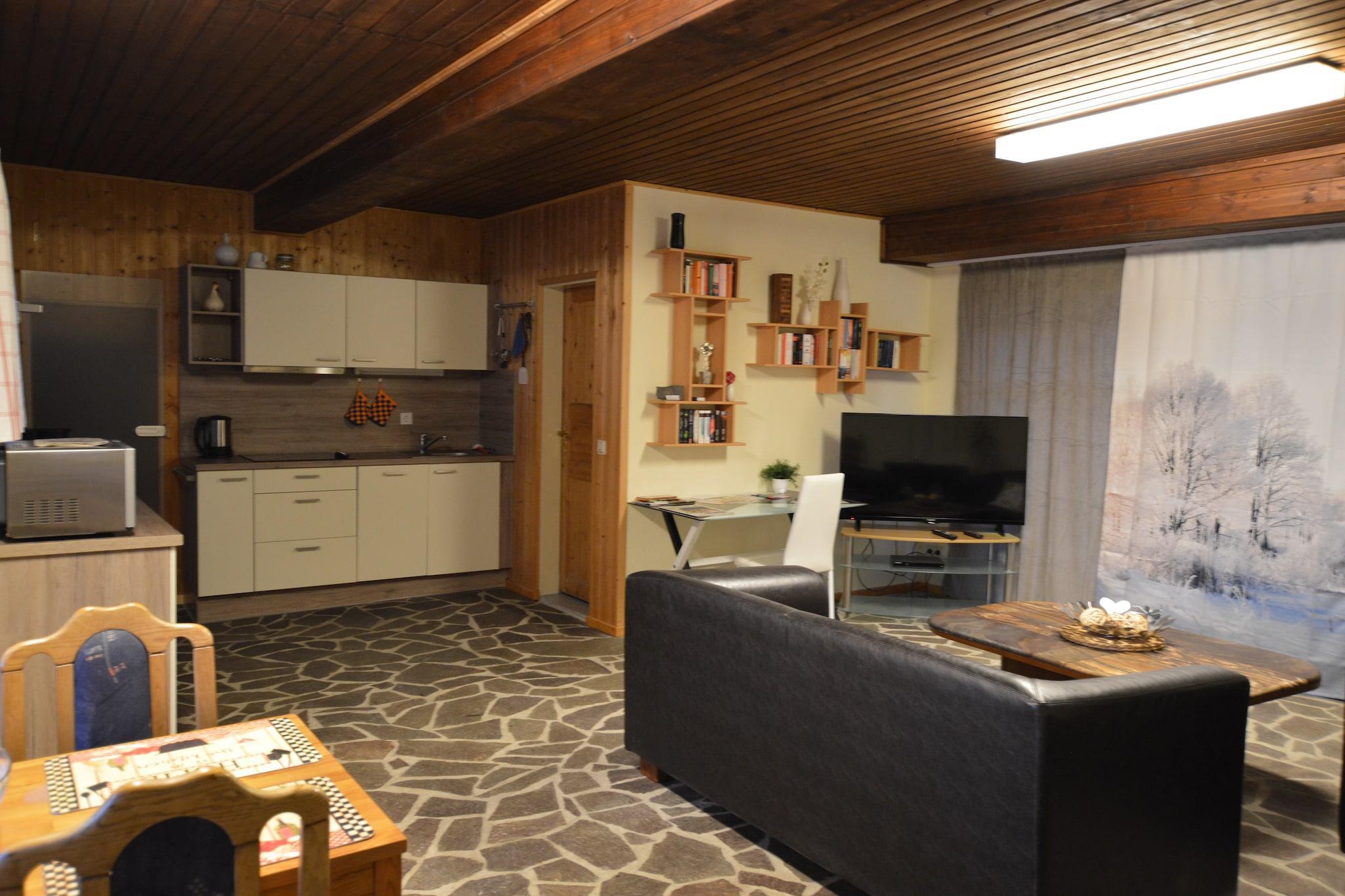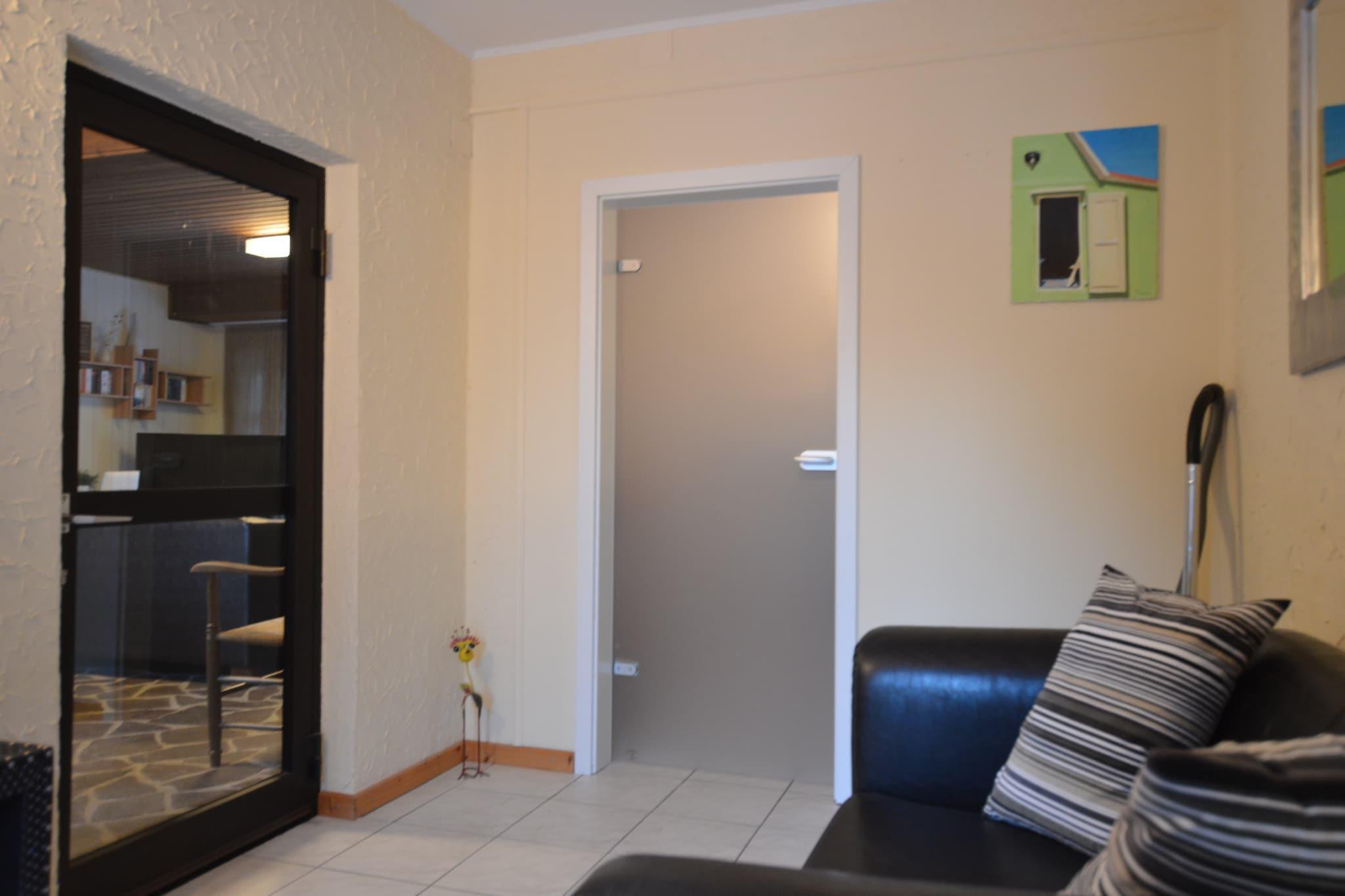 Denne sjarmerende 2-roms leiligheten i 1. etasje i fylket Manderscheid er ideell for familier, som komfortabelt har plass til opptil 4 gjester. Stuen tilbyr en avslappende plass med TV og koselig sittegruppe, perfekt for å slappe av etter en dag med utforsking. Du finner 2 private parkeringsplasser på stedet, sammen med ekstra offentlig parkering rett foran bygningen. Denne beliggenheten ligger i den naturskjønne Vulkaneifel-regionen, og er et paradis for tur- og sykkelentusiaster, med nærliggende skoger bare 0,2 km unna. Ikke gå glipp av å besøke de berømte Manderscheid slottsruinene, spesielt under den årlige slottsfestivalen. Andre lokale attraksjoner inkluderer Maarmuseum, dyreparker, Liserpfad-stier og Kyll-elven. Spahager og Eifelsteig-turstien ligger kun 10 minutter unna, mens restauranter og supermarked ligger mindre enn 1 km unna. Det moderne kjøkkenet er fullt utstyrt med mikrobølgeovn, oppvaskmaskin og kaffemaskin, noe som gjør måltidet enkelt. Nyt måltidene dine innendørs i den romslige stuen eller ute på terrassen i første etasje. Den nærmeste flyplassen ligger 41 km unna, noe som gjør denne leiligheten til en praktisk og fredelig ferie.