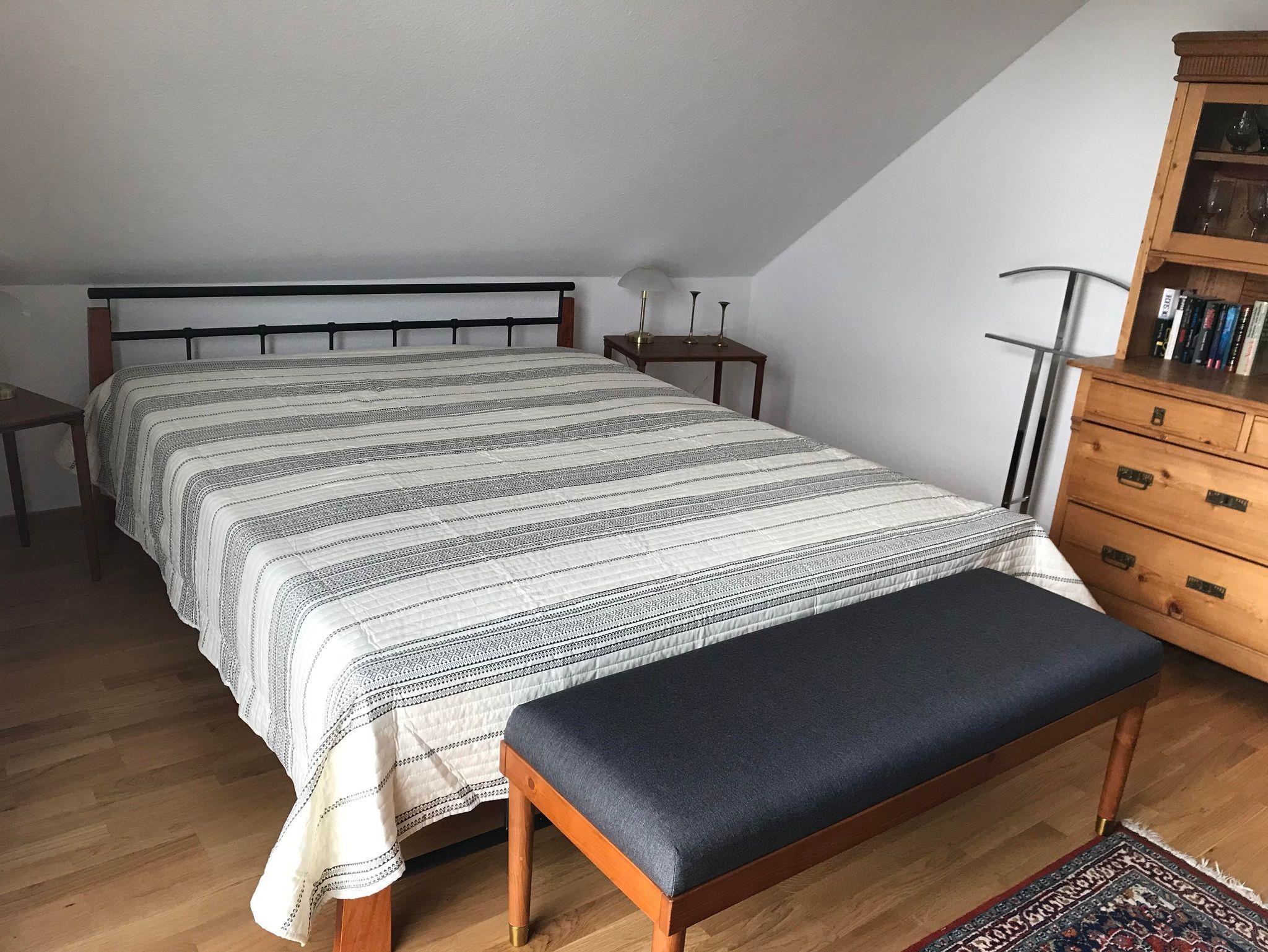Es stehen ein Kinderreisebett und ein Stokke-Kinderstuhl zur Verfügung.