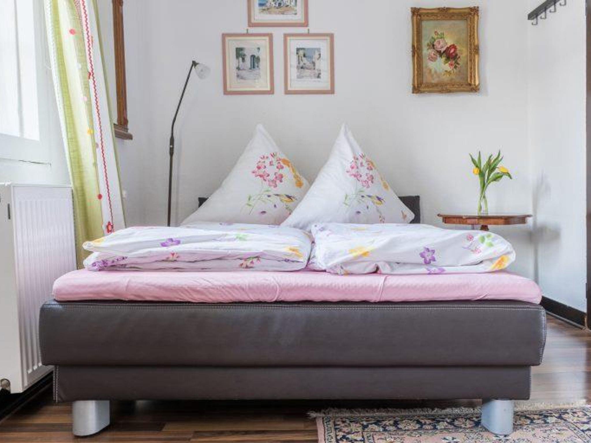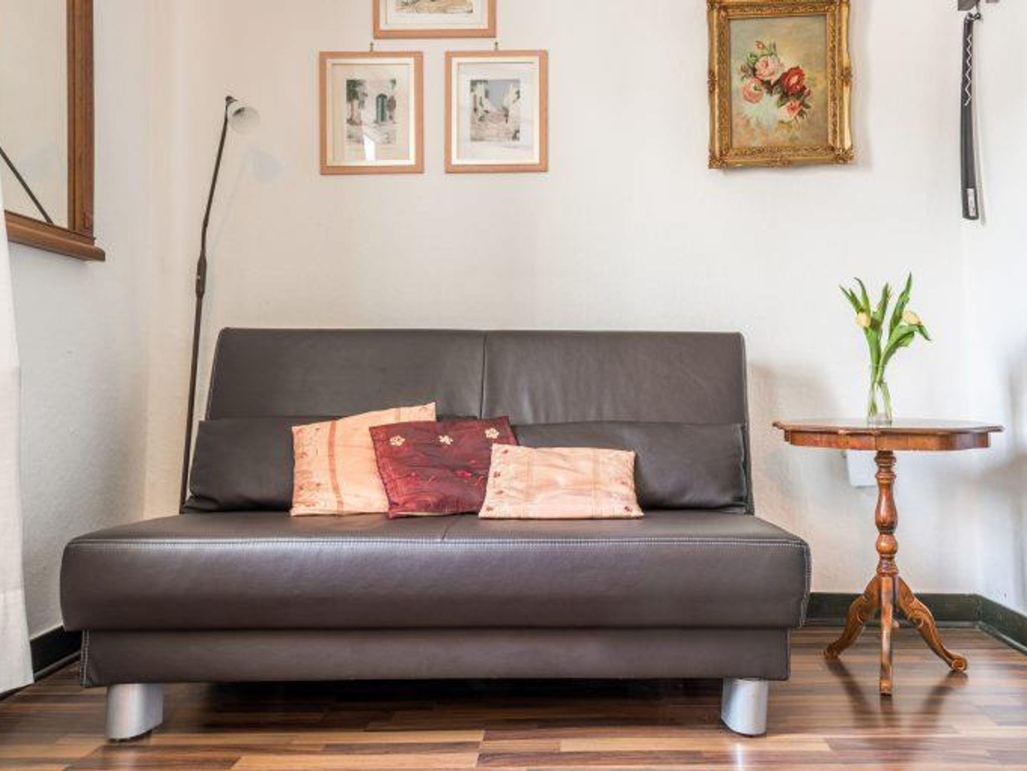 Die romantische Toskana-Suite im 1.Obergeschoss ist ein Zweizimmerappartement und bietet Ihnen ein Einzelbett (1,00×2,00m) im Schlafzimmer. Im Wohnzimmer steht eine Couch mit Schlaffunktion (1,40×2,00m) samt weichem Topper für angenehmen Schlaf, die auf Wunsch für die Übernachtung zwei weiterer Personen bereitsteht. Eine Kochzeile und ein separates Bad mit Badewanne stehen Ihnen ebenfalls zur Verfügung.