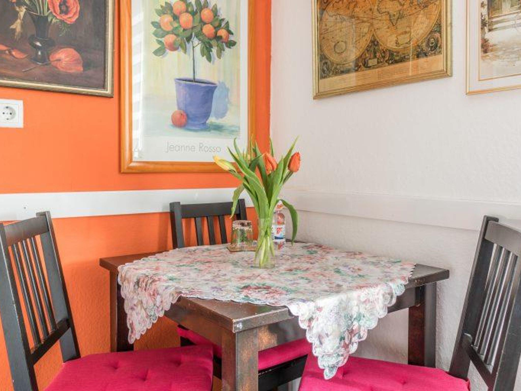 Alle Küchen sind vollausgestattet: Senseo-Kaffeemaschine, Wasserkocher, Herd mit zwei Platten, Besteck, Gläser, Teller, Töpfe, Pfannen, Geschirrtücher, Spülmittel, Kühlschrank mit Gefrierfach. Kaffee, verschiedene Teesorten, Milch und Zucker sowie Gewürze und Salz zum Kochen stehen in allen Suiten zur Verfügung. Der Essbereich bietet Ihnen einen Esstisch mit ausreichend Sitzgelegenheiten.