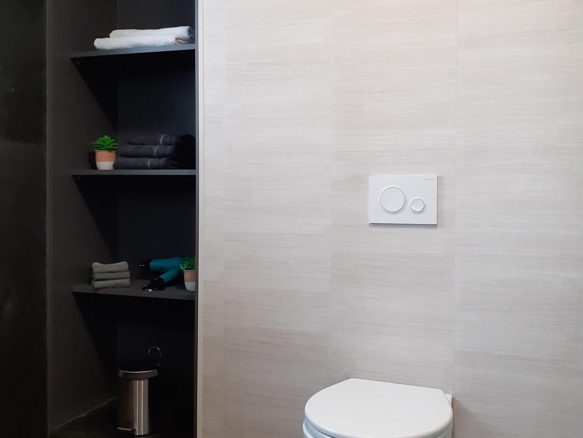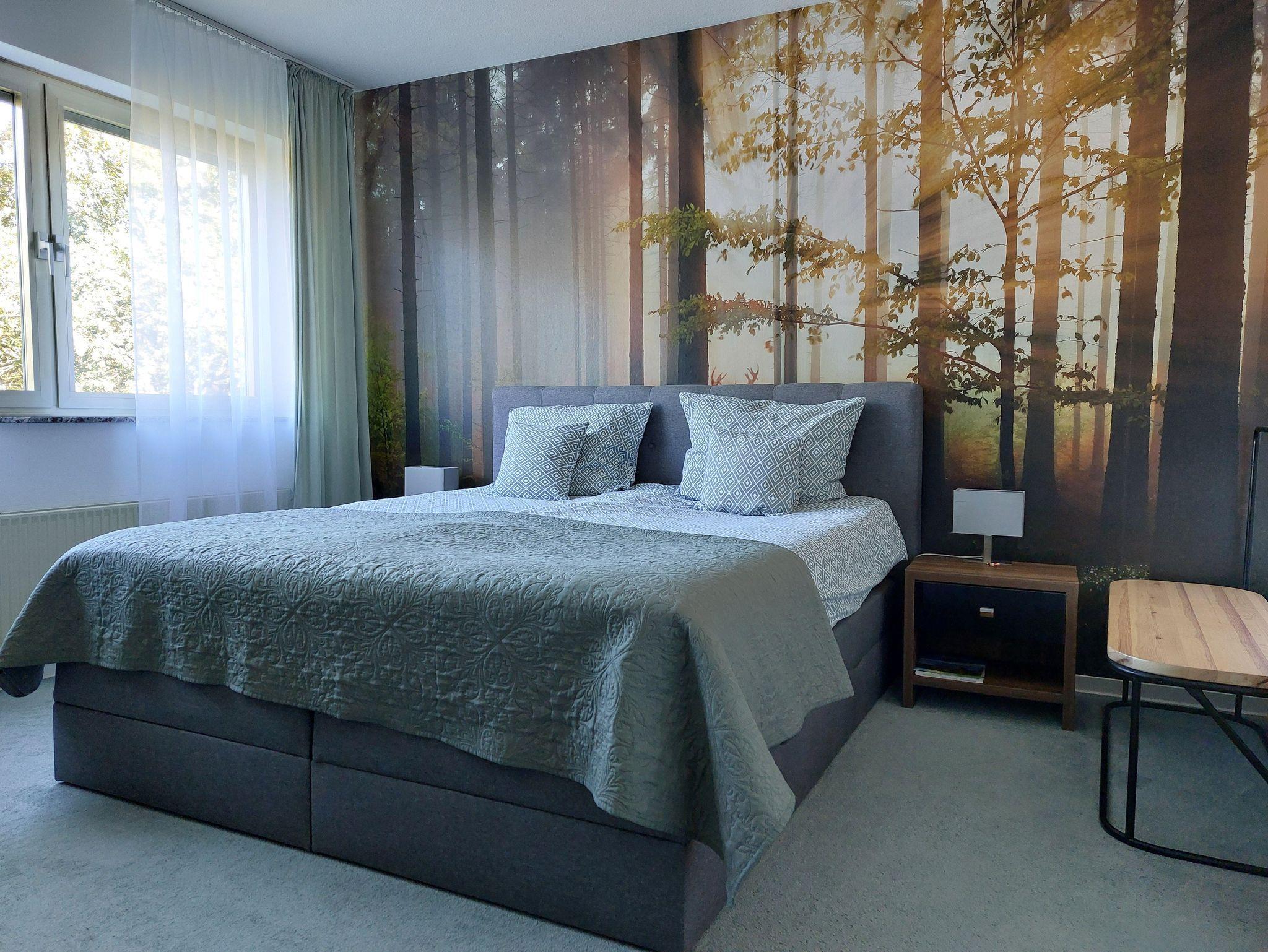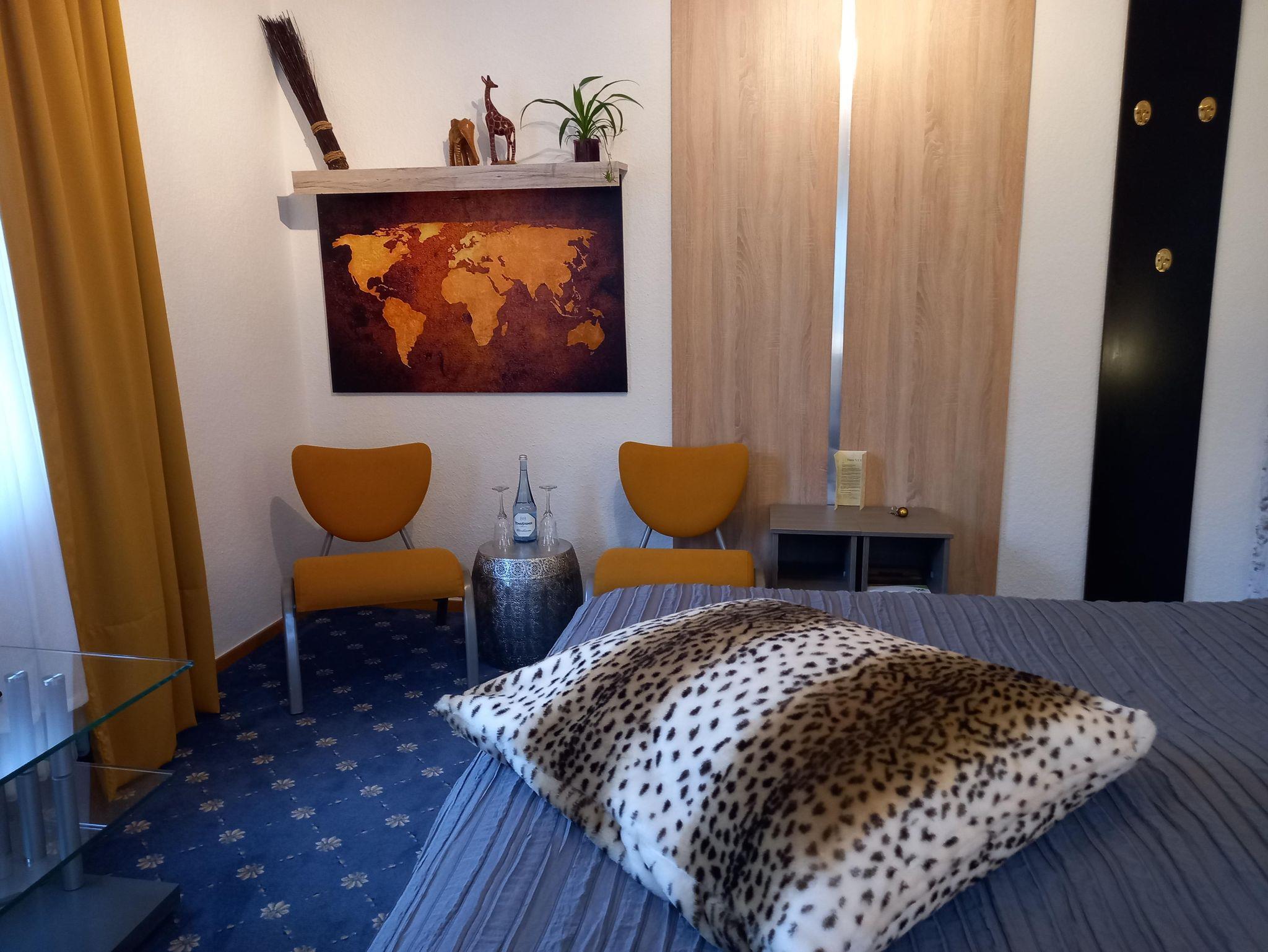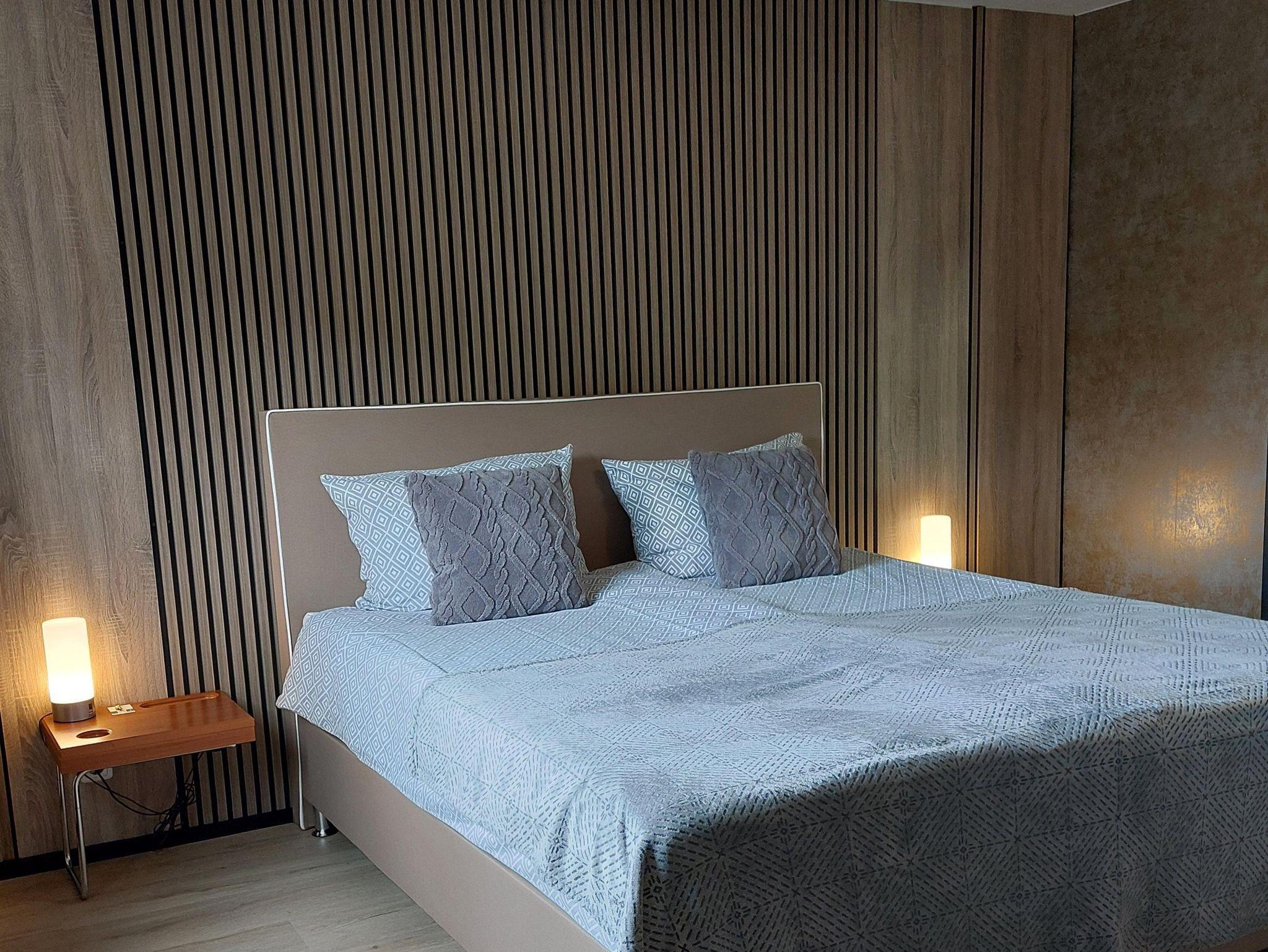 Ausgestattet mit einem bequemen Boxspringbett, Sitzecke, TV. Badezimmer mit Dusche, Toilette, Waschbecken, Haartrockner, Handtüchern, Handseife und Duschgel / Shampoo.