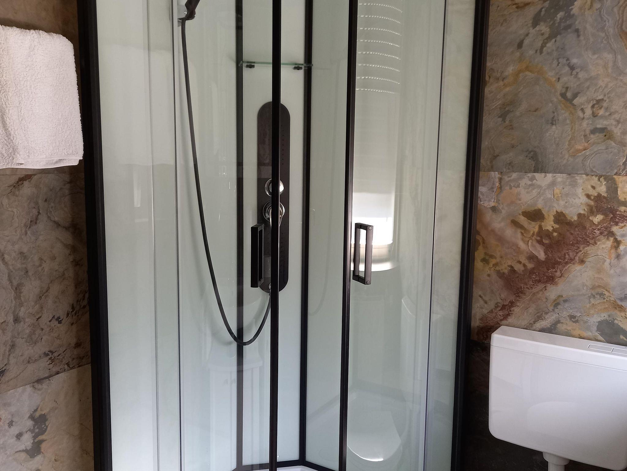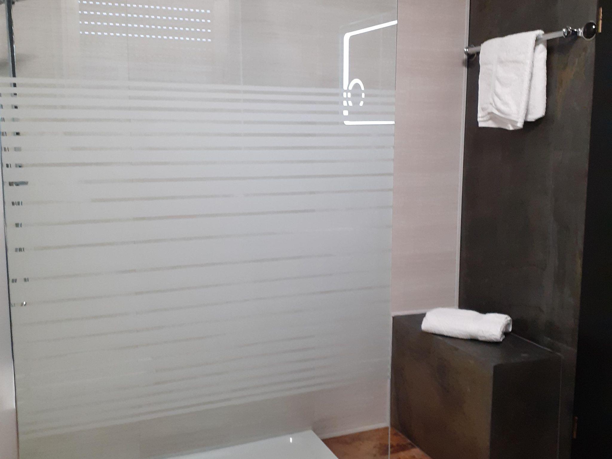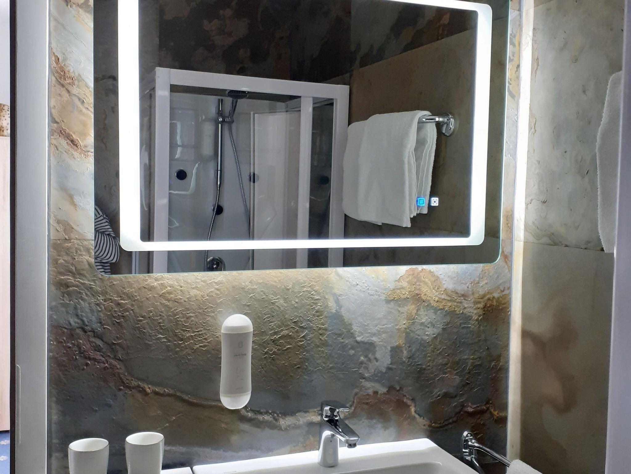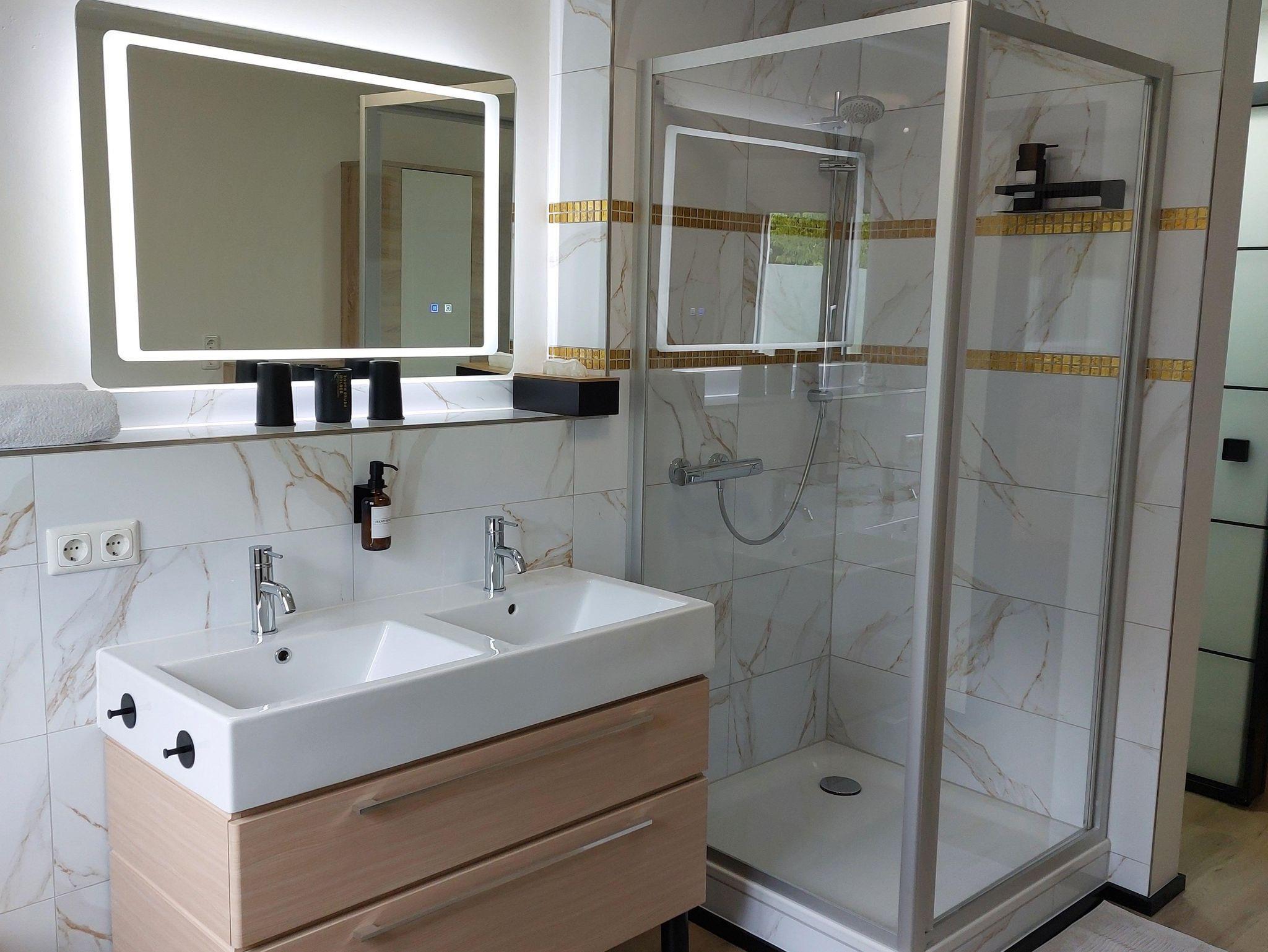 Ausgestattet mit einem bequemen Boxspringbett, Sitzecke, TV. Badezimmer mit Dusche, Toilette, Waschbecken, Haartrockner, Handtüchern, Handseife und Duschgel / Shampoo.