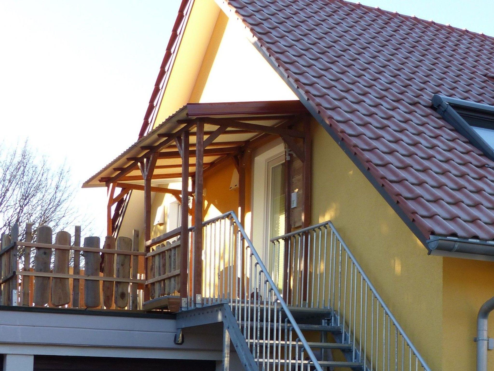 Der Zugang zur Wohnung erfolgt über eine Stahl-Außentreppe mit 14 Stufen.