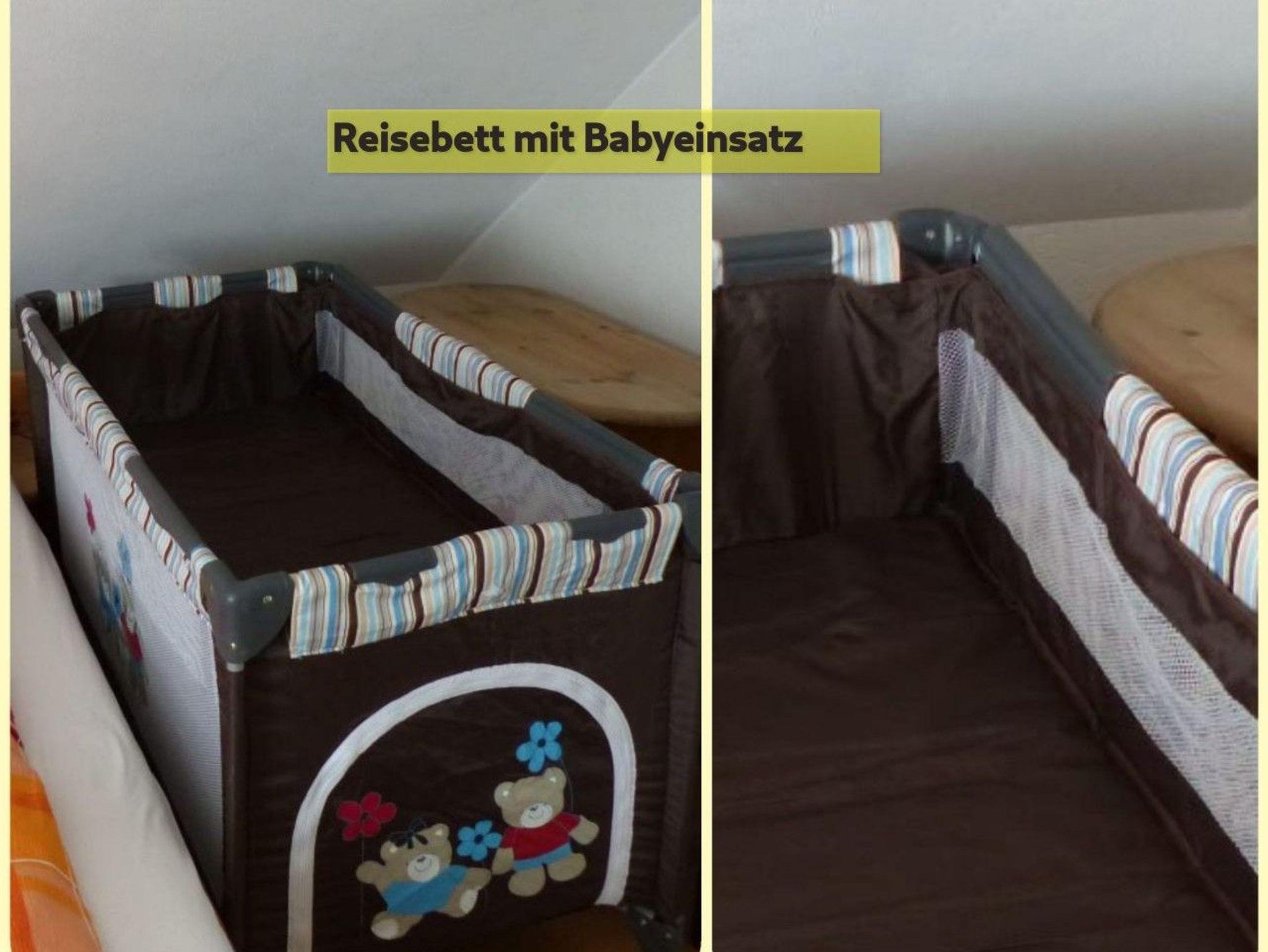 • Kinderausstattung: Baby-/Kleinkindbett (siehe Bilder), Hochstuhl, Gesellschaftsspiele, Bücher, CDs, Einkaufsladen, Spiele für draußen