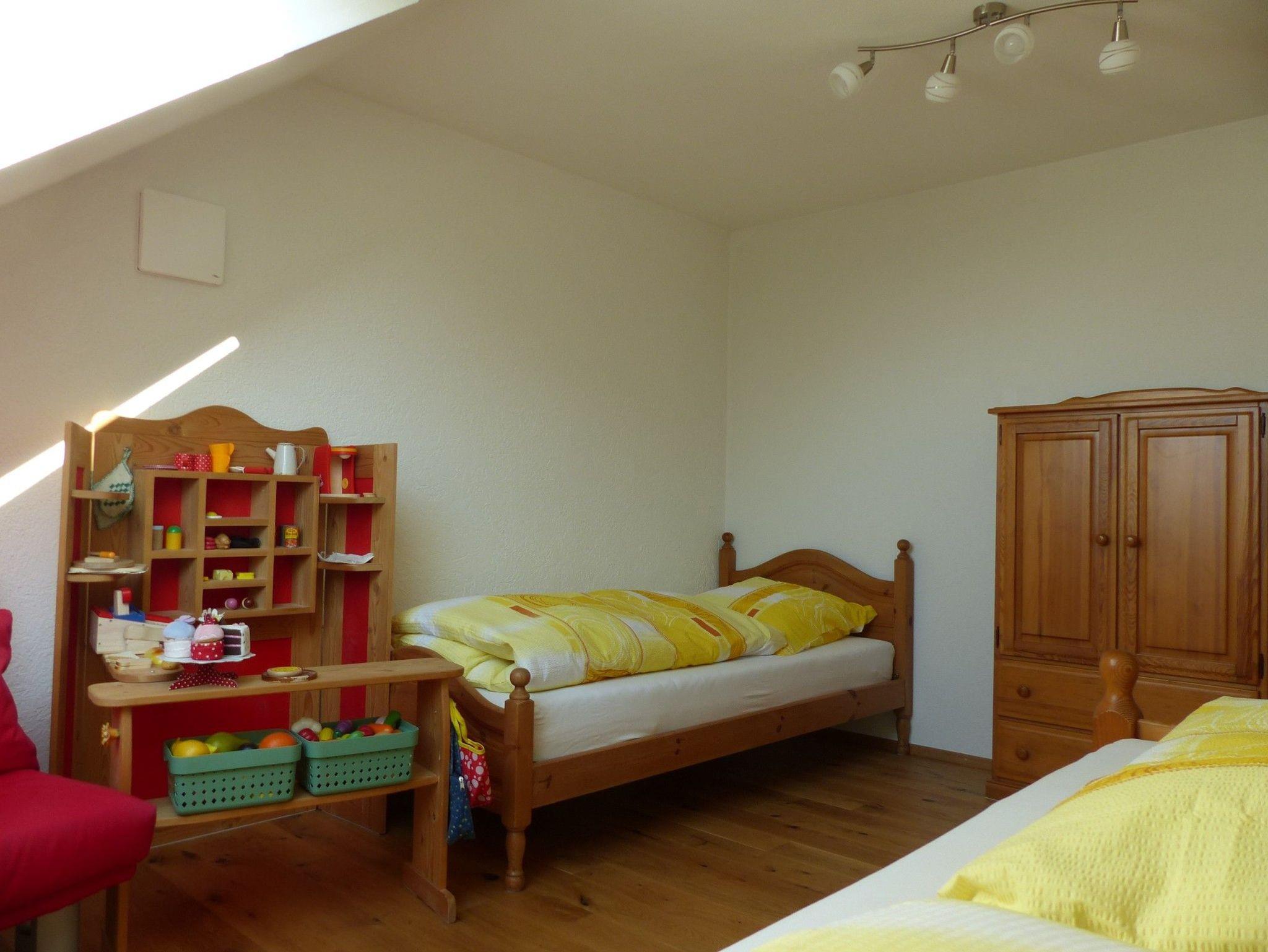 Die Wohnung ist in 2 Schlafzimmern mit 4 Betten (1 Doppelbett, 2 Einzelbetten) ausgestattet. Bei Bedarf kann ein Schlaf-Sessel für einen weiteren Schlafplatz aufgebettet werden, auch ein Reisebett (60*120cm, für Baby oder Kleinkind, siehe Bilder) steht nach vorheriger Rücksprache zur Verfügung. Alle Schlafzimmer können mit Rollläden abgedunkelt werden.