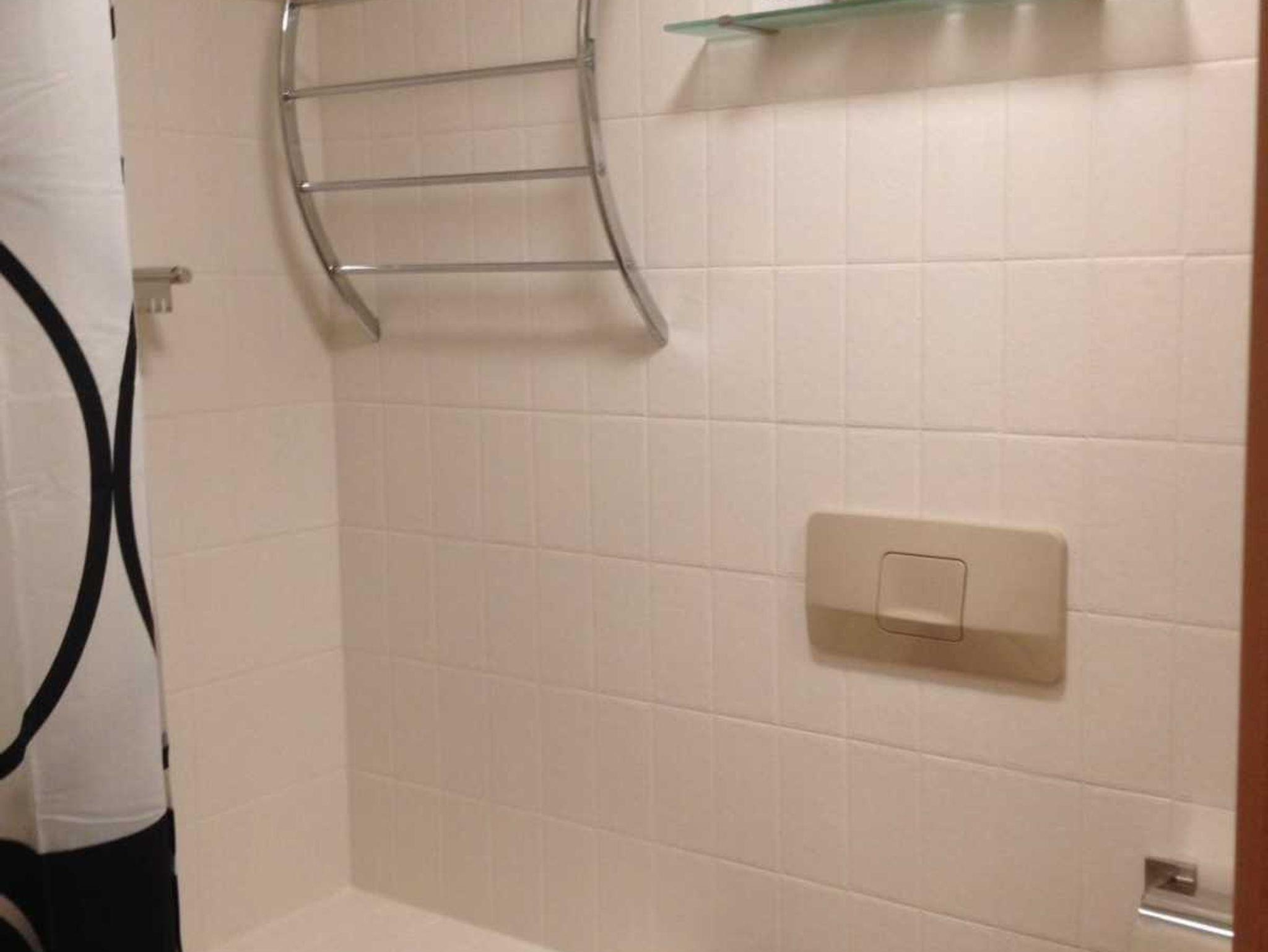 Das Badezimmer verfügt über WC, Waschbecken und Dusche. Der geräumige Abstellraum mit Waschmaschine und Trockner machen den Komfort der Wohnung komplett.