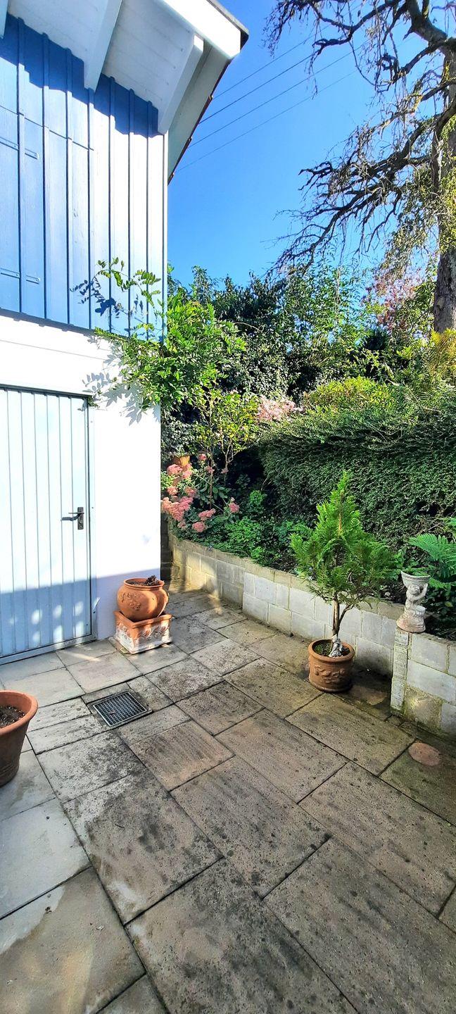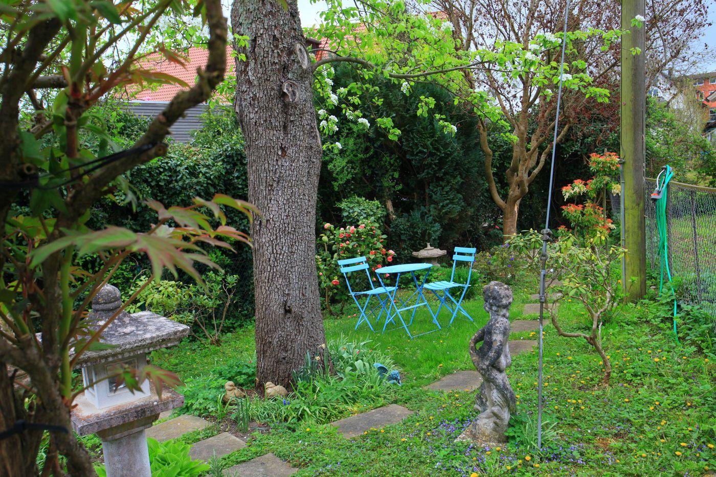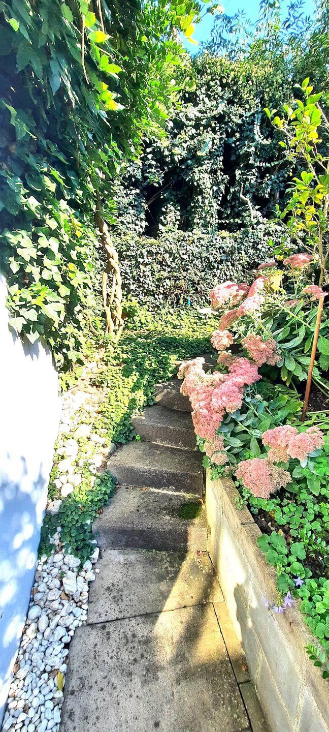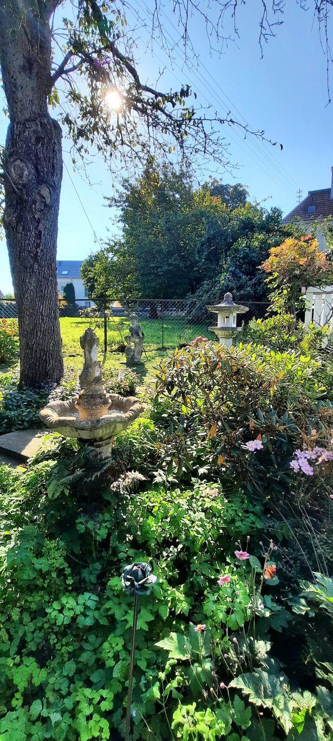 Ein besonderes Highlight ist der Zugang über einen kleinen Steg in den idyllischen Garten. Umgeben von Blumen und viel Grün können Sie hier entspannen und die Seele baumeln lassen.