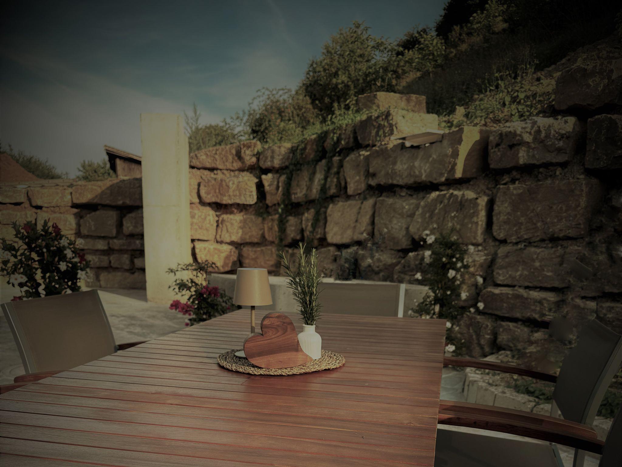 Ihr Urlaubszuhause mit großer Terrasse und Blick auf Weinberge und Taubertal.
