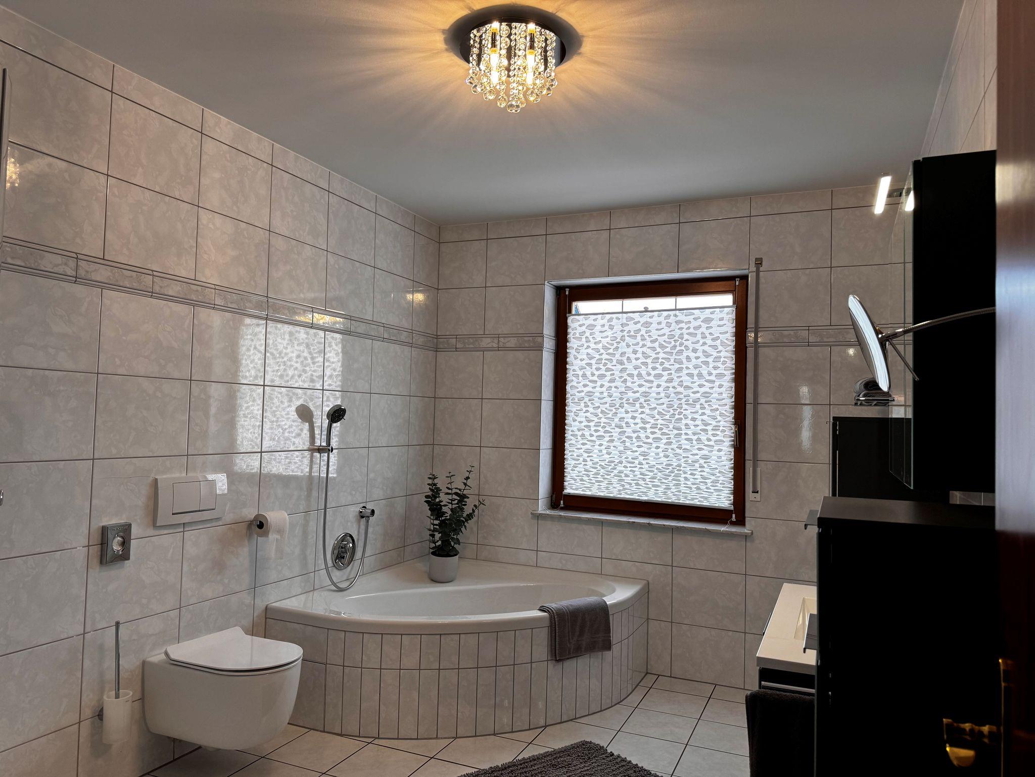 - Geräumiges Bad mit Regendusche, Badewanne, WC und Haarfön sowie ein separates Gäste-WC