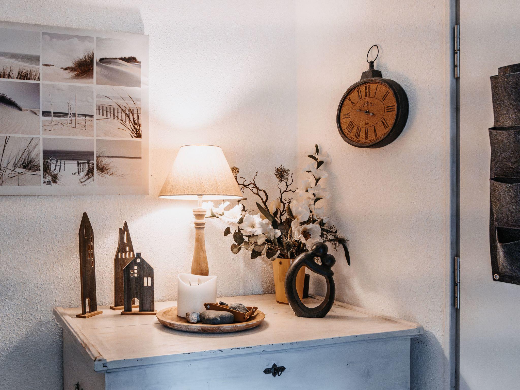 In the small kitchen there is a fridge, freezer, microwave (MW, baking and grill function), double induction hob, coffee pad and coffee machine, toaster for self-catering. The bright, friendly bathroom is equipped with a massage shower and a towel radiator. Hairdryer, towels and bathrobes are provided.