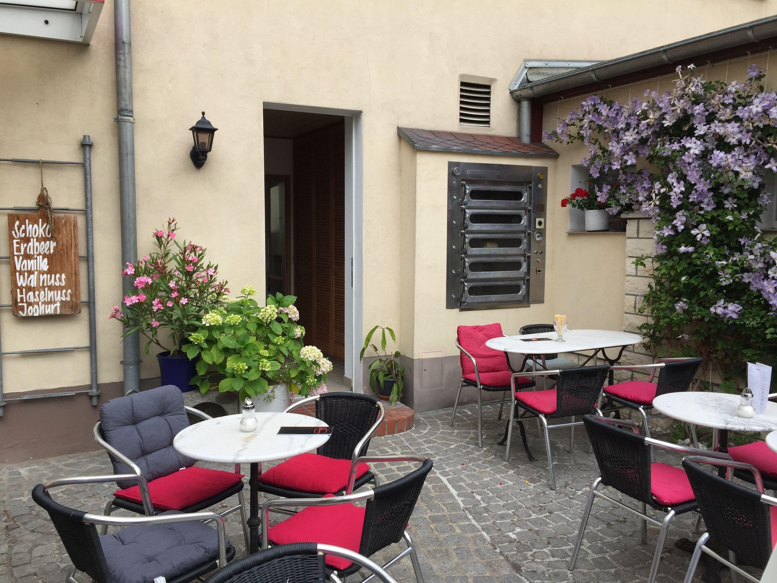 Im Hof befindet sich ein Kaffeegärtchen, des sich im Haus befindlichen Caféhauses. Das kann auch außerhalb der Öffnungszeiten benutzt werden.