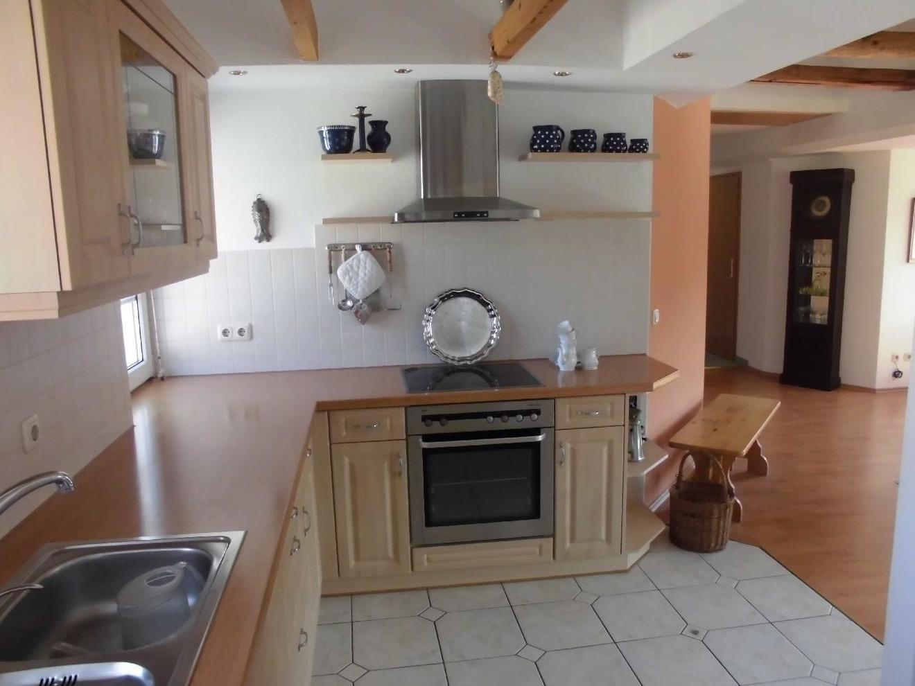 Die Wohnung ist großzügig geschnitten, durch etliche Gaupen und Dachfenster sehr hell und sonnig. Die Küche ist zum Wohnbereich offen. Sie ist komplett eingerichtet und bietet alles, was zum täglichen Leben benötigt wird. Hierzu Fotos ansehen. Küche mit Geschirrspüler, E-Herd, Kühl-Gefrierkombination, Kaffeemaschine, Wasserkocher, Geschirr. Im geräumigen Schlafzimmer steht ein Doppelbett 1,80 x 2,00 m. Im Wohnbereich besteht die Möglichkeit, ein Schlafsofa auszuklappen, 1,15 x 2,00 m. Jeder Raum mit Fenster, Küche und Bad gefliest. Wohn-/Schlafraum teilweise Laminat. Tageslichtbad mit Wanne, ohne Dusche. Fön.