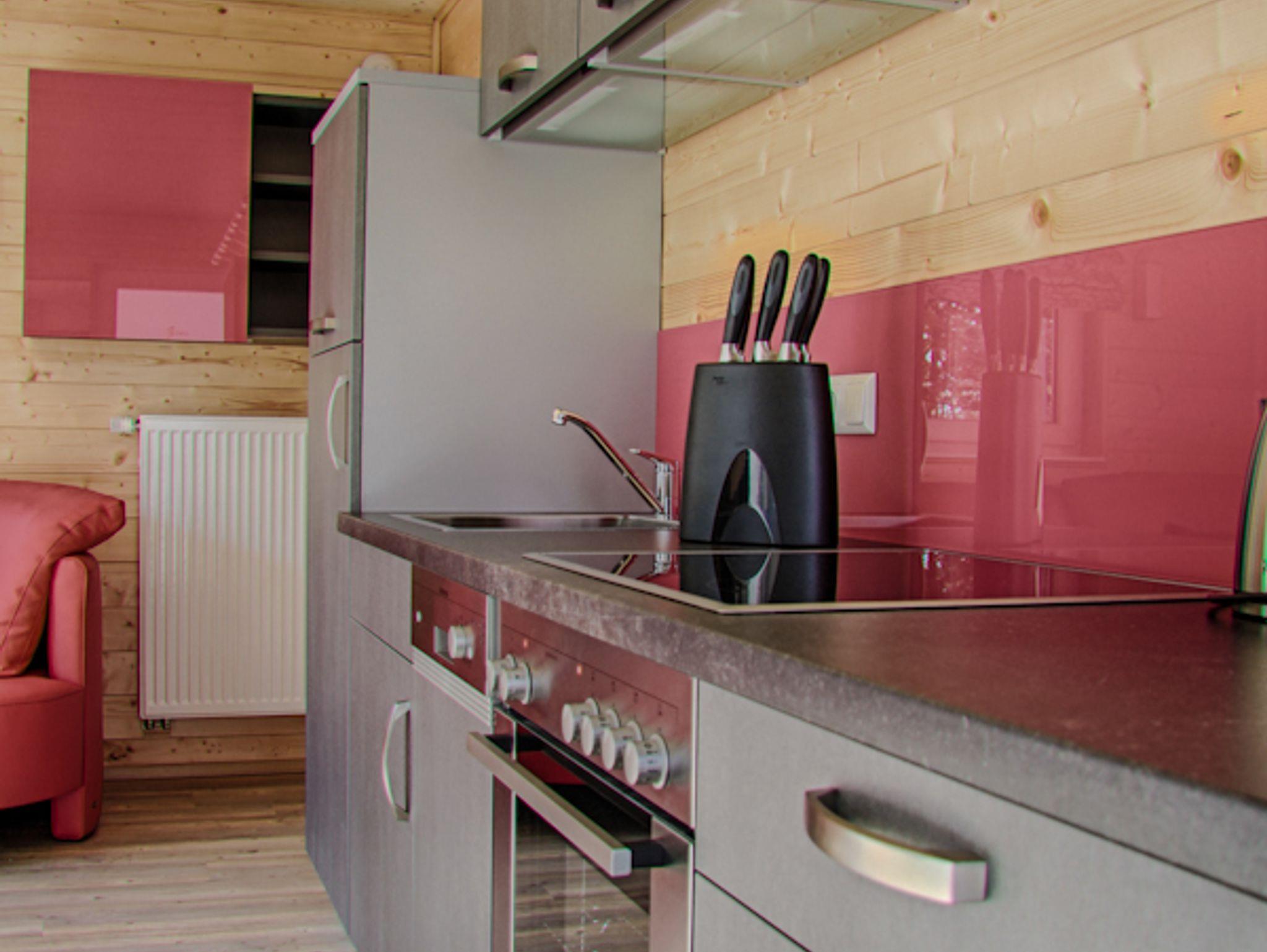 Das Haus hat ein eigenes Thema, welches sich nicht nur im Namen sondern auch in dessen Gestaltung - sowohl innen als auch außen - widerspiegelt. In unserem Holzhaus ruhen Sie sanft im Wasserbett. Das Bad ist in blau gehalten und das pinkfarbene Sofa lädt zum Relaxen ein. Auf der Terrasse erwartet Sie neben dem beheizten „Badezuber“ eine Sitzgarnitur aus Metall die dazu einlädt, das Essen nach draußen zu verlegen. Das Ferienhaus bietet auf 70 m² Platz für bis zu 5 Personen. Die voll ausgestattete, moderne Küche mit Kühlschrank, Spülmaschine, Herd, Backofen, Wasserkocher und Kaffeemaschine lässt keine Wünsche offen und lädt zu gemütlichen Kochabenden ein. Das WLAN und den Parkplatz können Sie gerne kostenfrei nutzen