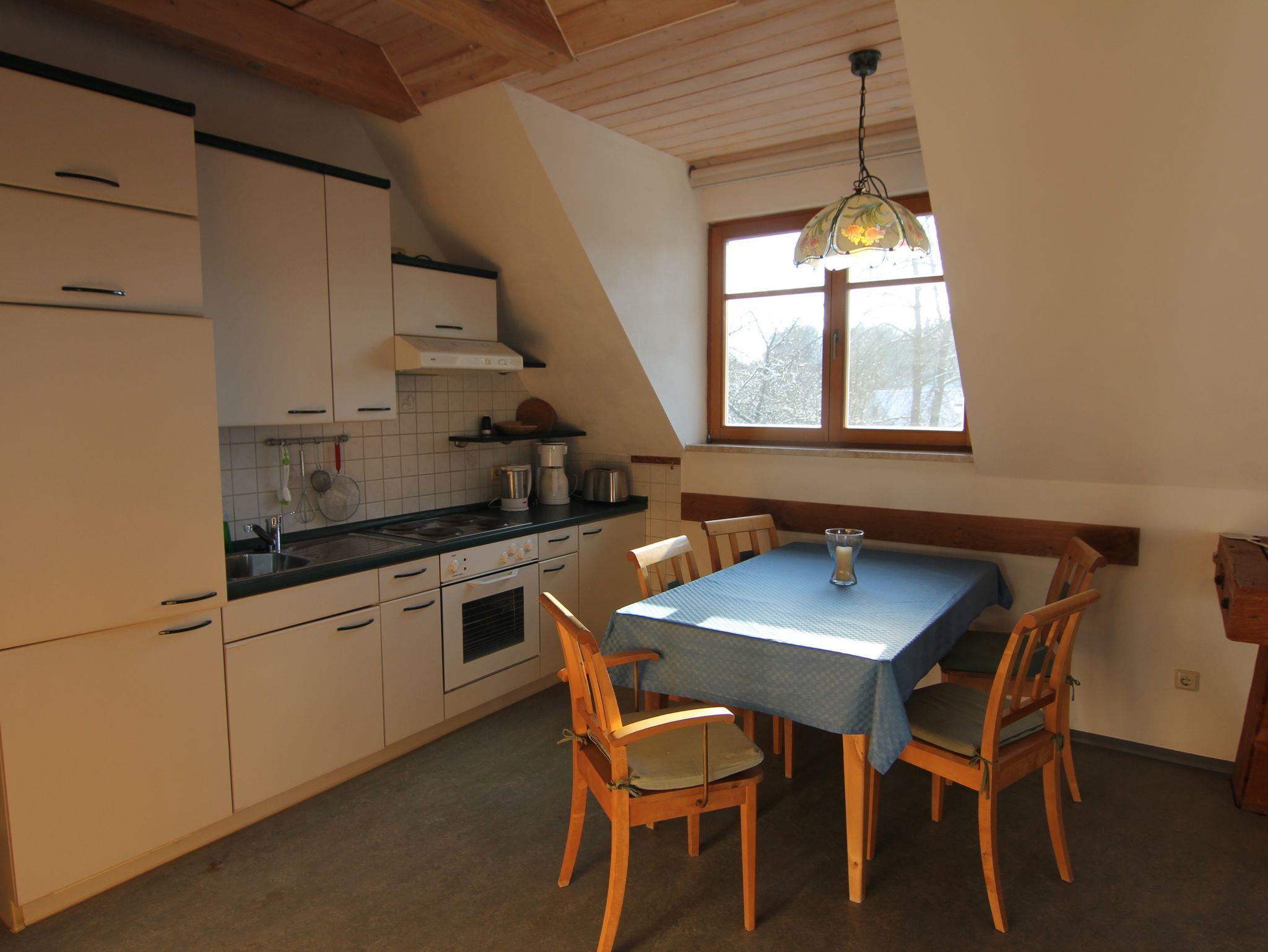 Unsere gemütliche Wohnung besitzt einen Wohnraum mit Essplatz, Kochnische und TV, ein Bad mit Dusche und WC, einen kleinen Abstellraum, einen Schlafraum mit Doppelbett und einen Schlafraum mit zwei getrennten Betten. Zusätzlich können bis zu zwei Personen auf dem Schlafsofa im Wohnraum nächtigen.