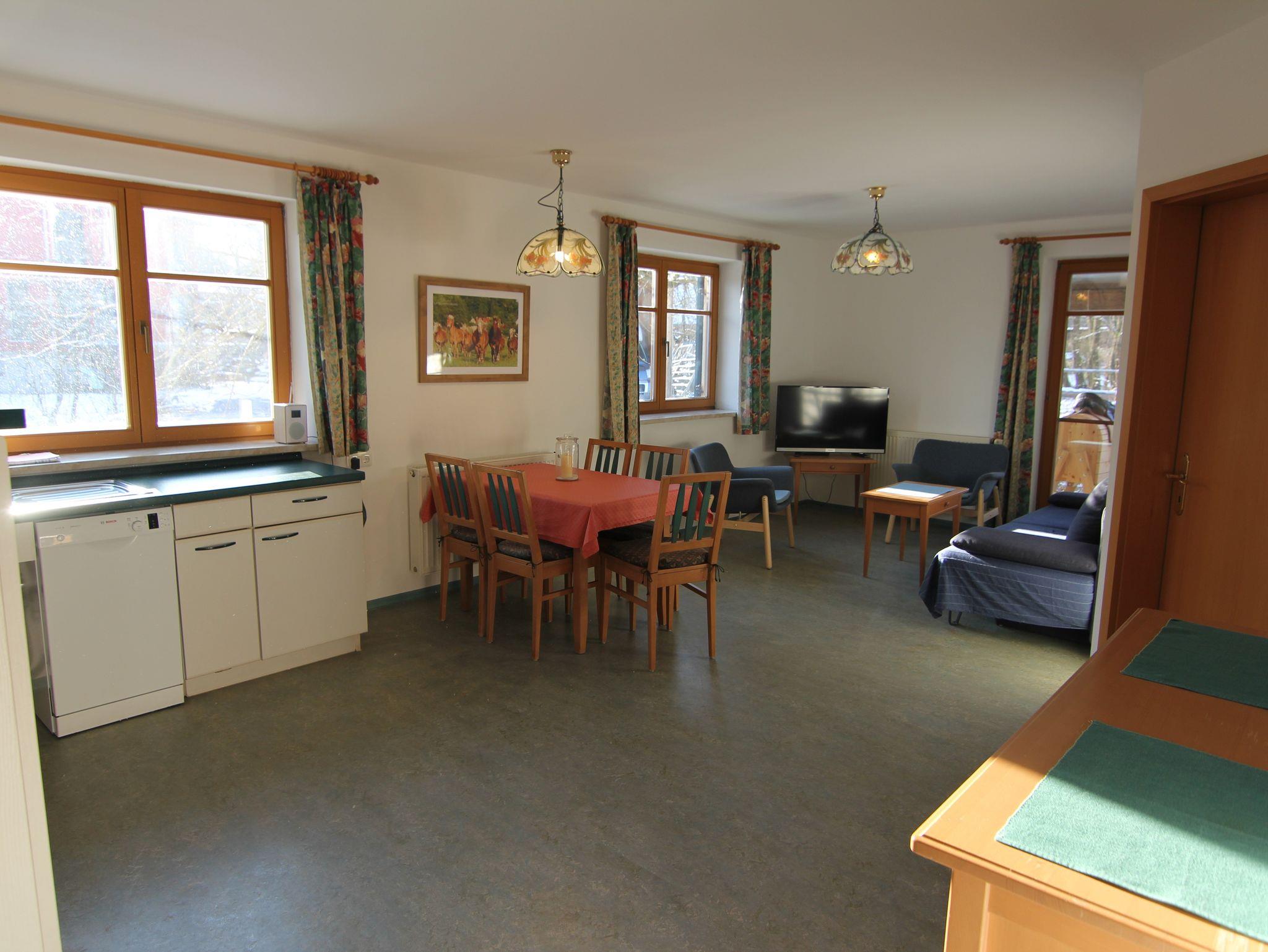 Unsere gemütliche Wohnung besitzt einen Wohnraum mit Essplatz, Kochnische und TV, ein Bad mit Dusche und WC, einen kleinen Abstellraum, einen Schlafraum mit Doppelbett und einen Schlafraum mit zwei getrennten Betten. Zusätzlich können bis zu zwei Personen auf dem Schlafsofa im Wohnraum nächtigen. Die Ferienwohnung an der Koppel ist behindertengerecht und schwellenfrei und mit einer Geschirrspülmaschine eingerichtet.