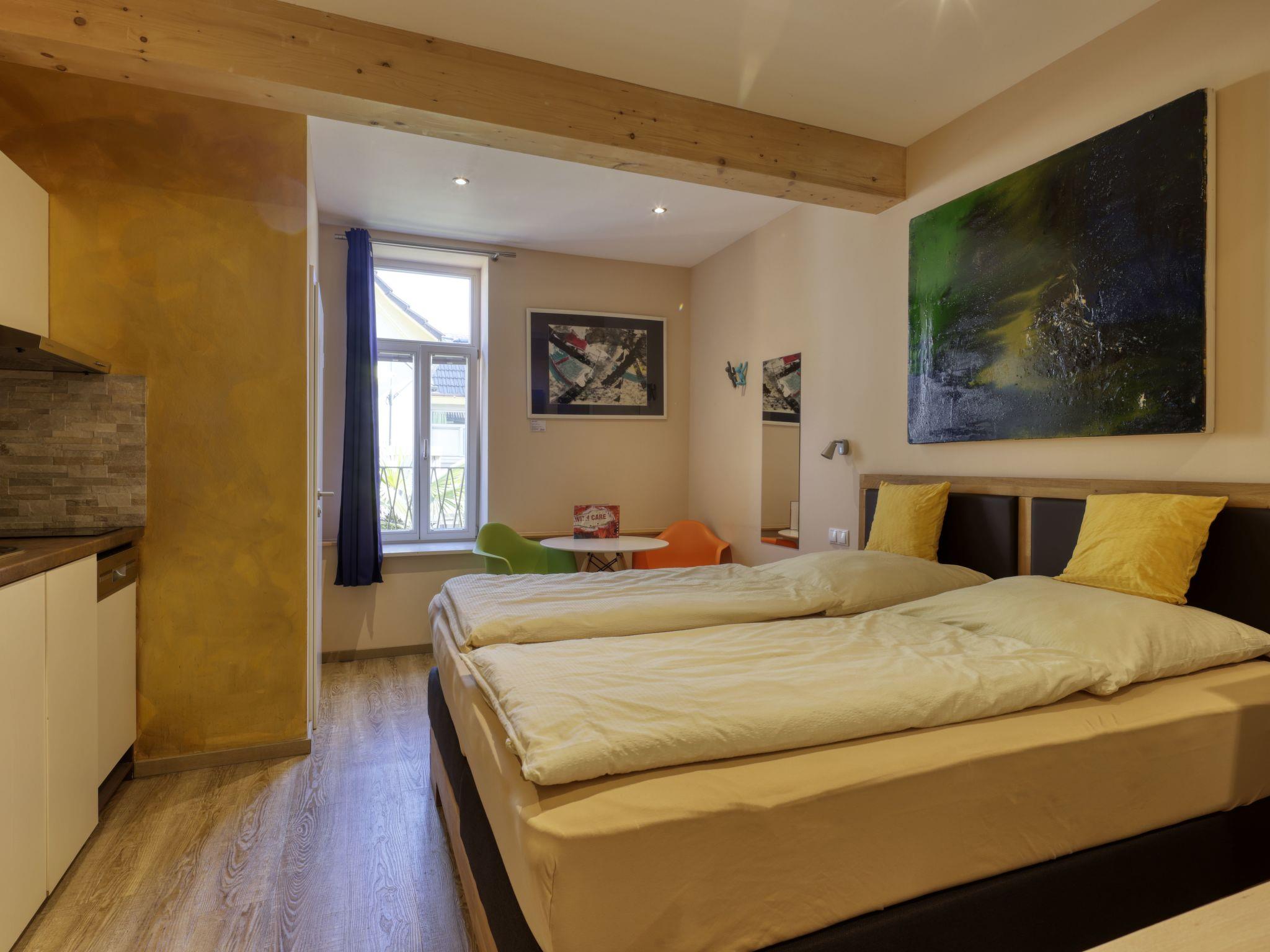 Quiet, cosily furnished superior studio with double bed on the upper floor of the Hofstallung with a total of 6 flats and the feed room.