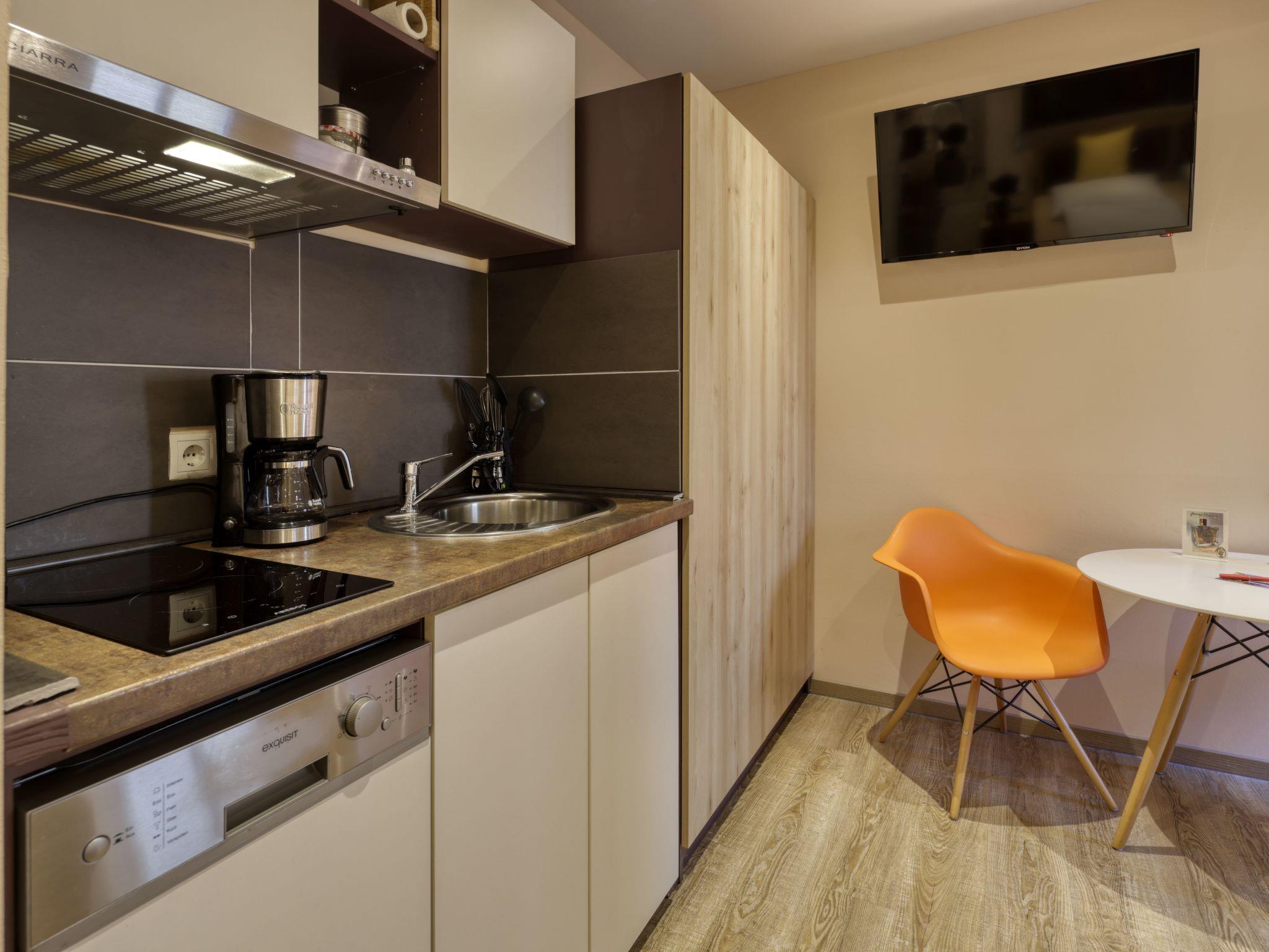 Quiet, cosily furnished superior studio with double bed on the ground floor of the Hofstallung with a total of 6 flats; in the cosy bedroom you can lie comfortably on a solid box-spring double bed under cosy down duvets; in the evening you can enjoy the heavenly peace and quiet in the idyllic inner courtyard. As in the entire house, underfloor heating is also installed here, which emits heat evenly and pleasantly. The windows and door to the inner courtyard are stylishly screened by sun-yellow roller blinds, while the parquet flooring makes the rooms pleasant to walk on and easy to clean, as does the bright and friendly wet area and the spacious wardrobe room with desk and seating area.The Mainkai promenade for strolling and sunbathing is right next to the apartment complex; there is also a well-run international restaurant with sun terraces, lounge and vaulted cellar. Just 80 metres above, on the market square, there are several restaurants ranging from Chinese and Greek to one of the best Franconian brewery pubs, the Bräustüble. You will also find bakers, butchers and all other shops for your daily needs within walking distance around the market square.Short descriptionOther : Non-smoking houseShort description 1Number of kitchens : 1SurroundingsLeisure facilities : Car rental, bicycle rentalSports facilities in the area : Fishing, basketball, football pitch, golf course, hunting, canoeing, mountain biking, bicycle tours, riding area / riding possibilities, rowing, sailing, sports centre, tennis, water skiingGarden and outdoor facilitiesGarden equipment : Garden furniture available, barbecue, pavilionServicesServices (may be subject to a charge) : Cleaning service during your stay, Maid service