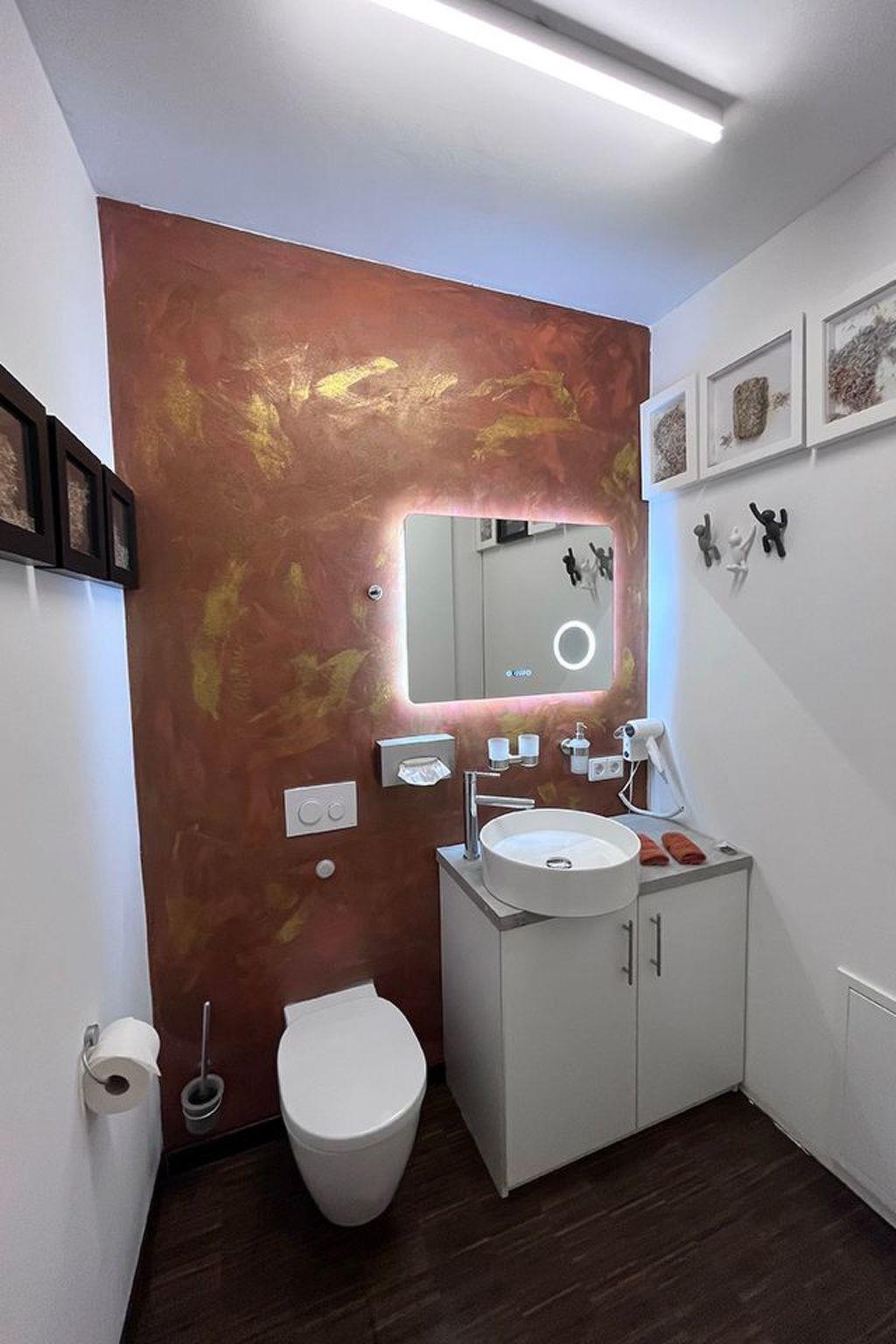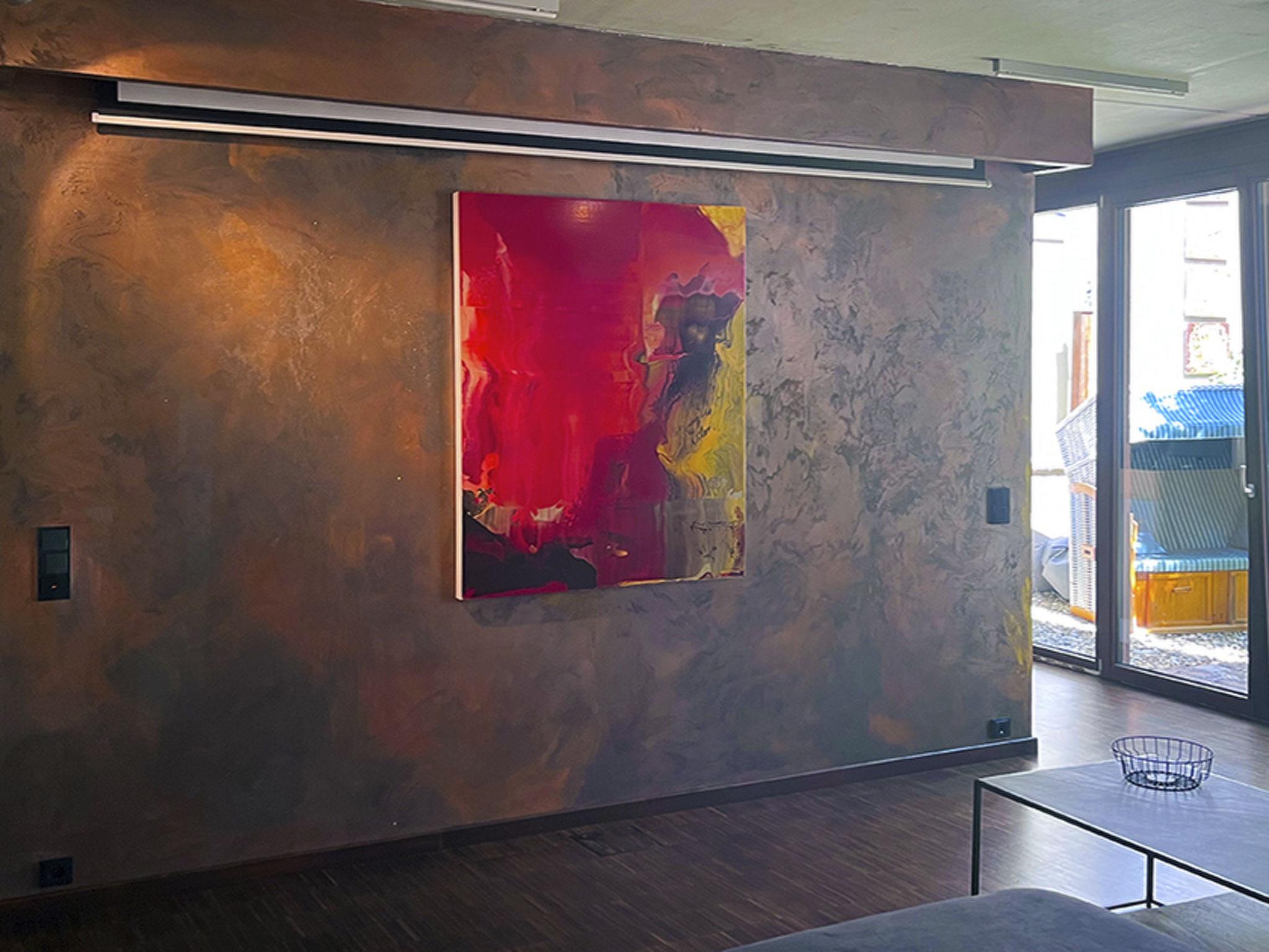 "At night in the museum..." ... has that always been your dream? Here you go: The KUNSTRAUM GALERIE-SUITE offers you this unique experience. Our serviced boardinghouse-apARTment is full of original works of art, including internationally renowned artists. It also offers every conceivable comfort for an unforgettable stay in an unrivalled atmosphere. Modern kitchen, electrically adjustable box-spring beds, private patio, beach chair, barbecue and, and, and... Enjoy a real cinema atmosphere in original box seats from the former Krone cinema on an oversized screen via IP-TV.
