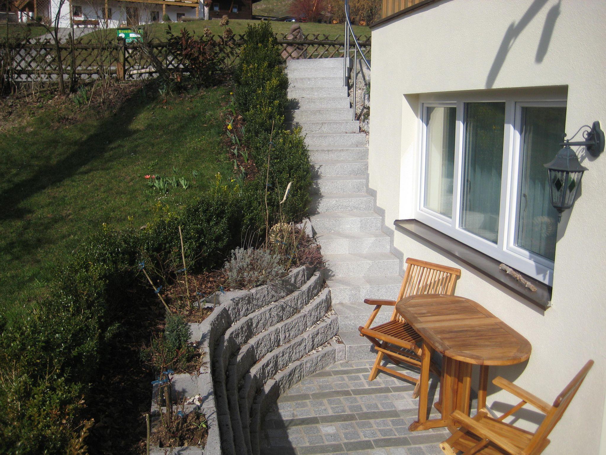 Appartment mit seperatem Eingang und eigener kleiner Terrasse. Bis auf 4 Stufen am Eingang komplett rollstuhlgeeignet (auch Bade entsprechend).