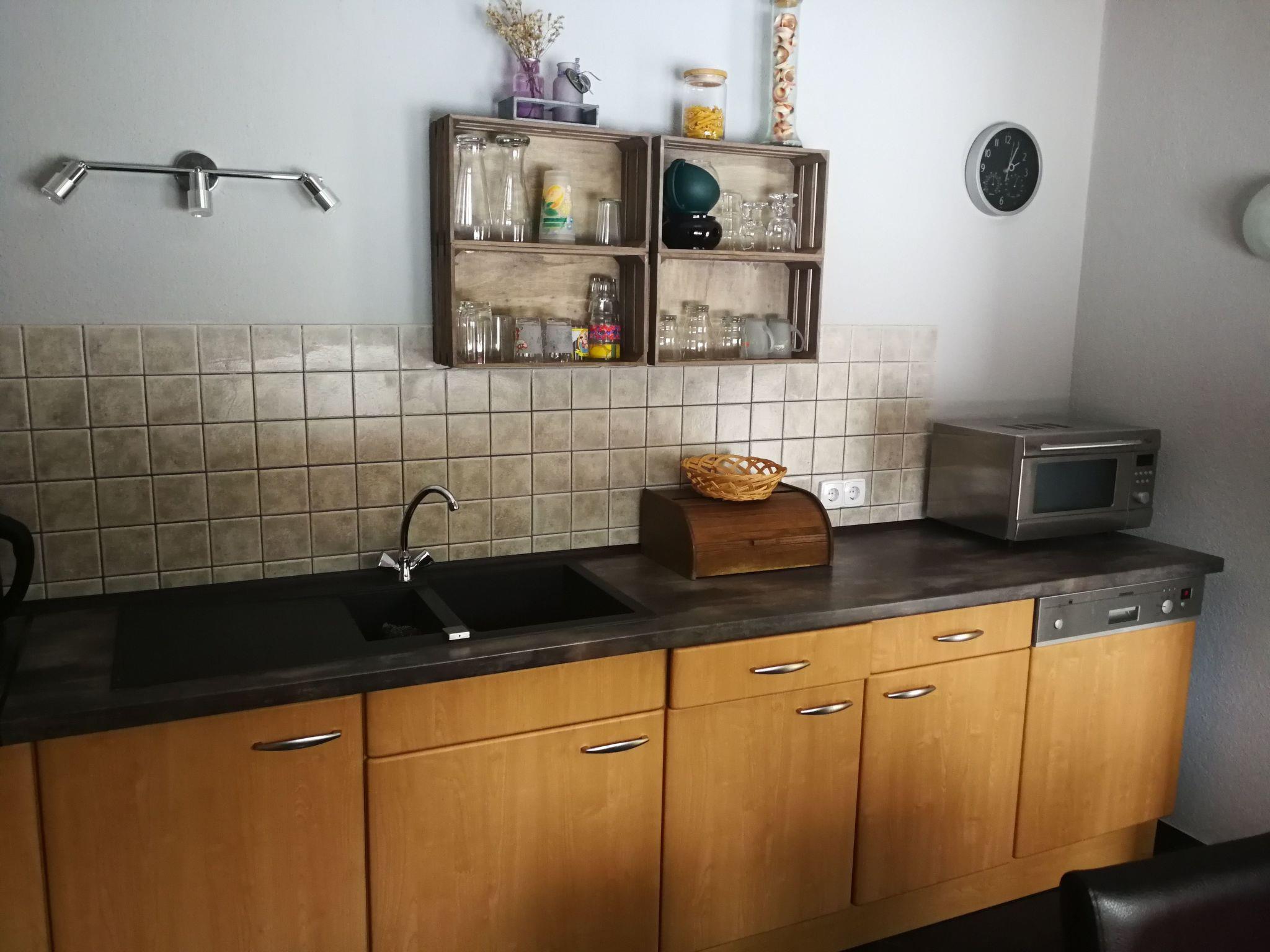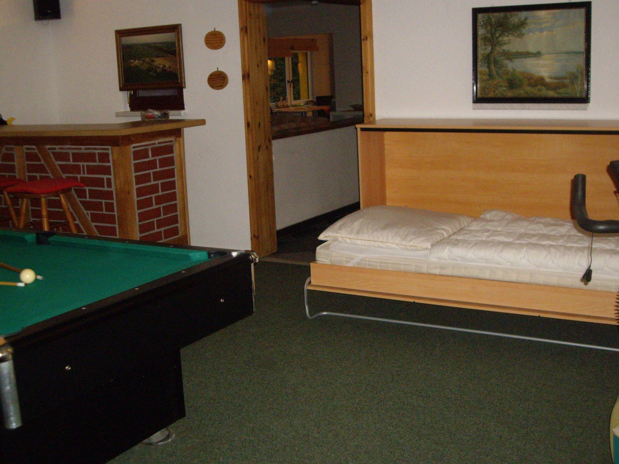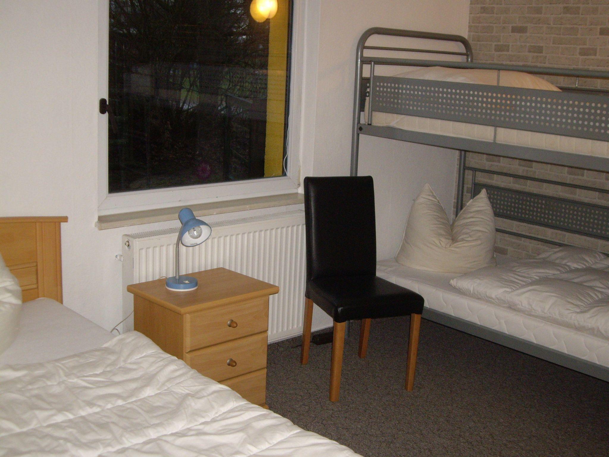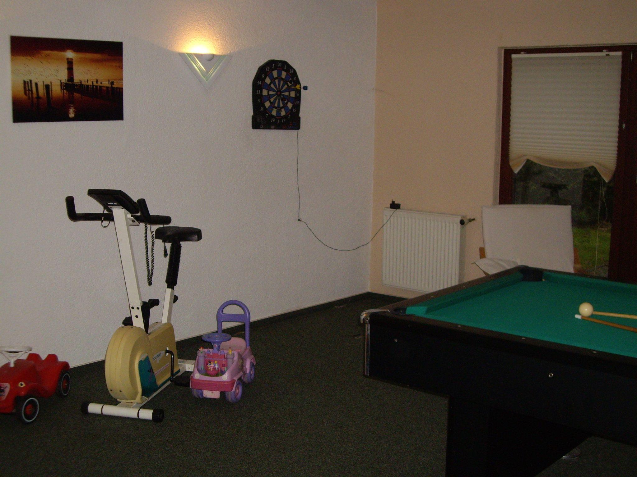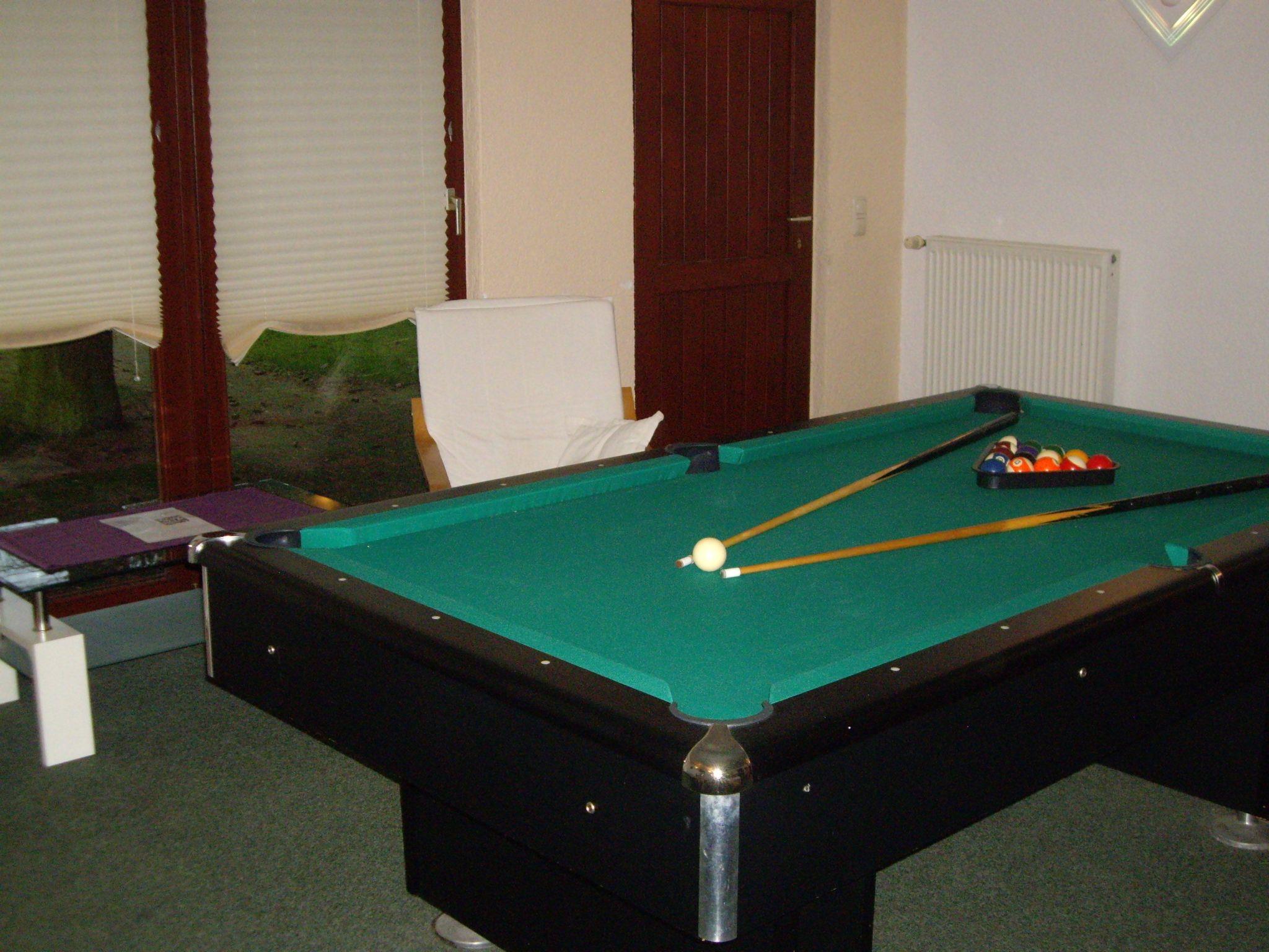 The ground-floor house is very spacious with an area of 140 m² and can accommodate up to six (seven) people. There are three bedrooms, one with bunk beds and one single bed. One bedroom has a double bed (1.80 m wide) and two people can sleep in the fitness room. The large living area with corner suite and open-plan kitchen provides plenty of space. The fully equipped kitchen includes a fridge with freezer compartment, ceramic hob, oven, coffee machine and microwave. The bathroom is modern, spacious and has a shower. Everything is very modern and furnished to a high standard. There is also a sauna, a large pool table and darts. So you can have a lot of fun even when the weather is not so good.