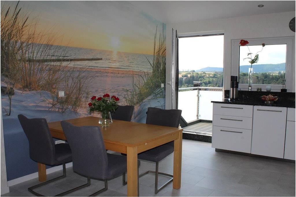 Den romslige og komfortable leiligheten i andre og øverste etasje i huset vårt har en åpen, men visuelt adskilt, stue og spisestue med et fullt utstyrt kjøkken (oppvaskmaskin, kaffemaskin, induksjonstopp, multifunksjonsovn, osv.), et stort soverom med en dobbel boxmadrass og separat walk-in closet, et andre rom som egner seg som kontor eller soverom med en komfortabel sovesofa (ca. 140 x 200 cm soveplass), et moderne dusjrom med toalett og urinal, en stor sørøstvendt takterrasse og en vestvendt balkong, begge møblert. Et ekstra gjestetoalett er også tilgjengelig.