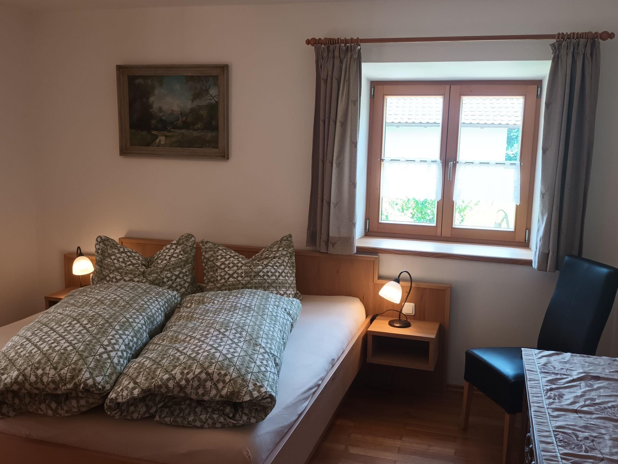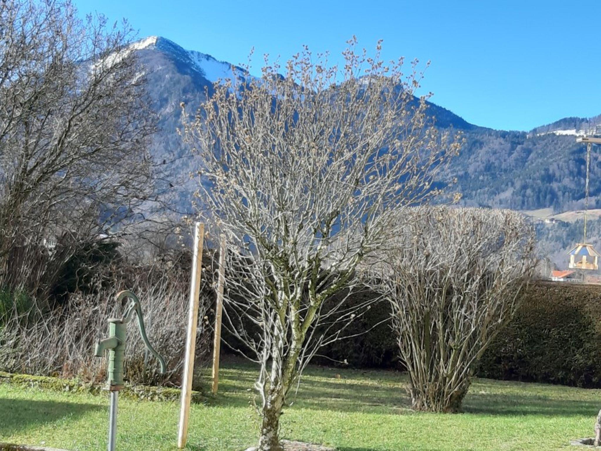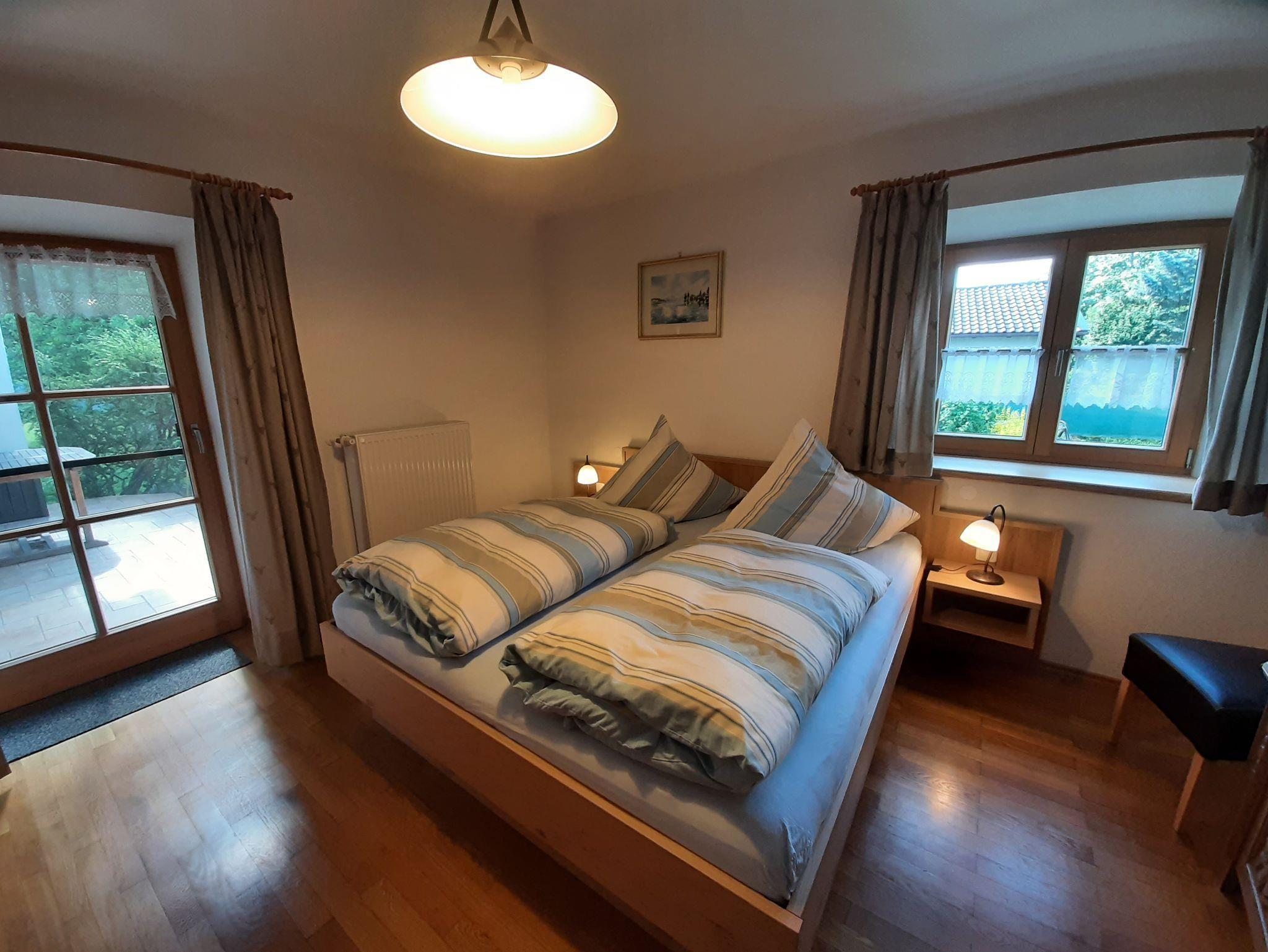 Wir möchten Sie sehr herzlich in unserer gut ausgestatteten Ferienwohnung (65qm) für 2 Personen, mit eigenem Eingang und Terrasse begrüßen. Die ruhige Erdgeschosswohnung liegt südseitig mit Zugang über den Garten. Sonnige Lage am Ortsrand mit Blick auf die umliegenden Chiemgauer Berge. 15 Gehminuten zur Ortsmitte. Ausstattung: Wohnküche mit Holzboden, gemütlicher Couch, Essgruppe in Wildeiche, Sat-TV, Stereoanlage, Küchenzeile mit Spülmaschine, Kühl/Gefrierkombination, Backofen, Ceranfeld, Kaffeemaschine, Wasserkocher, Toaster, Eierkocher. Separates Schlafzimmer in Wildeiche mit Doppelbett (Länge 2m), Holzboden und Mückengittertür. Großes Badezimmer mit Dusche, Badewanne, Föhn, Wäscheständer, separates WC. Kostenloses WLAN, Bettwäsche, Hand- und Geschirrtücher inklusive.Parkplatz direkt am Haus.