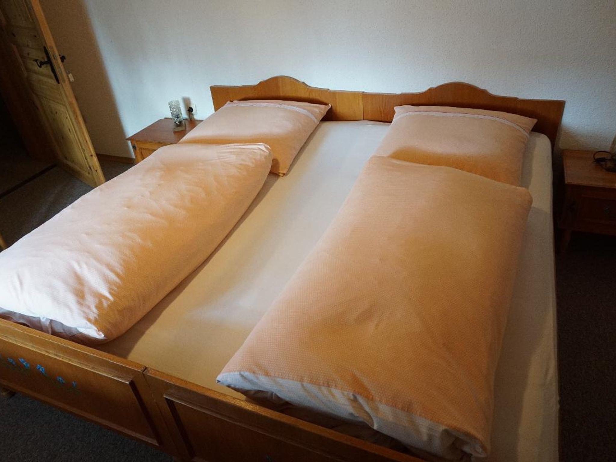 Unser Haus Almbergweg 2 hat zwei Ferienwohnungen im bäuerlichen Stil mit je 75 qm Wohnfläche und bietet Platz für bis zu 5 Personen. Die Wohnungen sind entweder mit Balkon oder Terrasse ausgestattet und haben eine rustikale, voll ausgestattete Wohnküche mit Mikrowelle, gemütlicher Essecke mit Eckbank und Tisch und einem bequemen Sofa mit gutem Blick auf den Fernseher (SatTV). Außerdem gibt es in jeder Wohnung ein Radio. Das Badezimmer ist ausgestattet mit Dusche, WC, Föhn und Handtüchern. Jede Wohnung hat zwei Schlafzimmer mit Doppelbetten und einem großzügigen Kleiderschrank. Die Möbel sind rustikal und aus Vollholz.