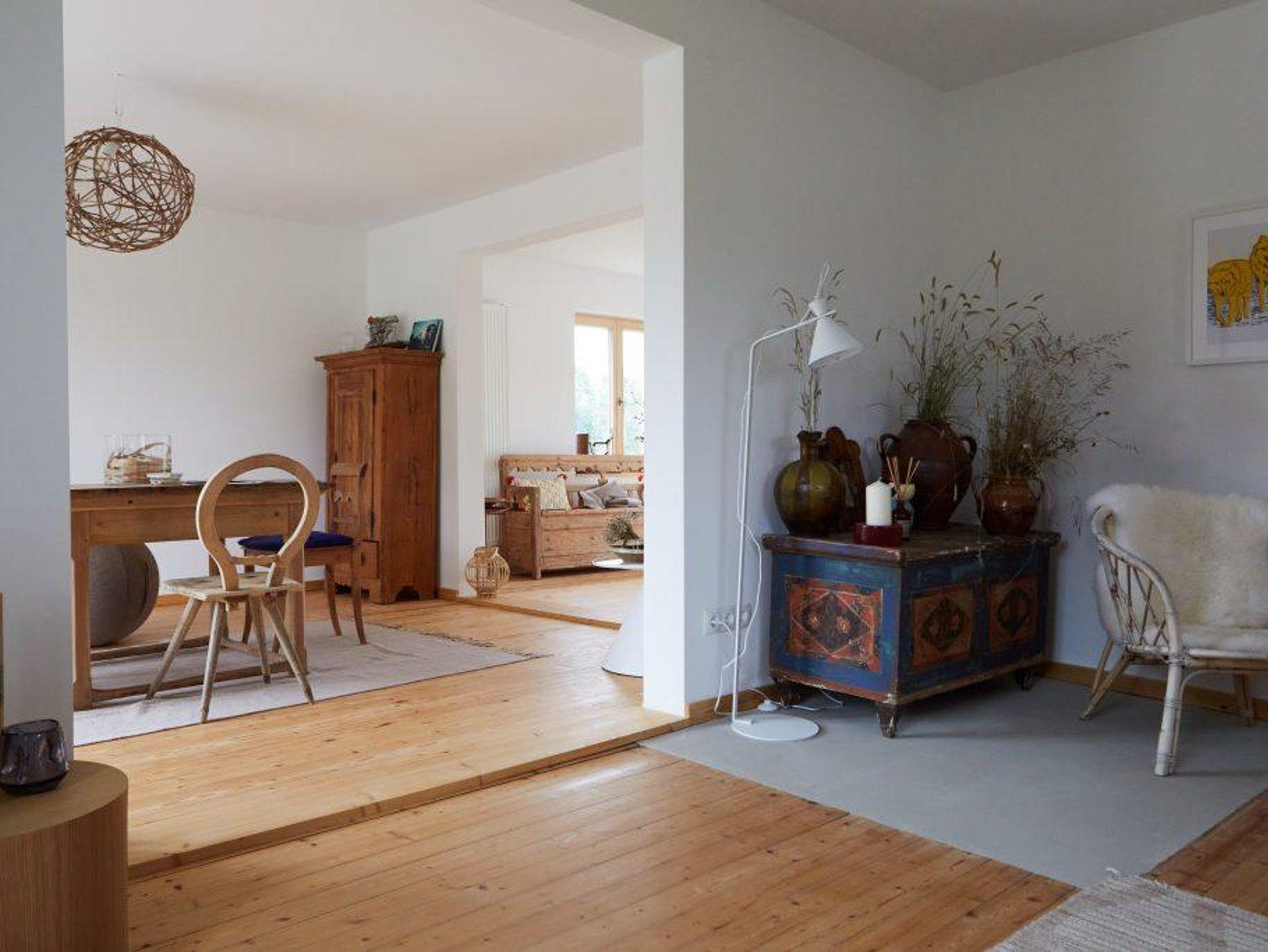 Dank eines hellen Holzparketts, charmanter antiker Holzmöbel kombiniert mit modernem Design und vielen Naturmaterialien ist das LICHTZEIT-Haus voller Wärme und Licht.