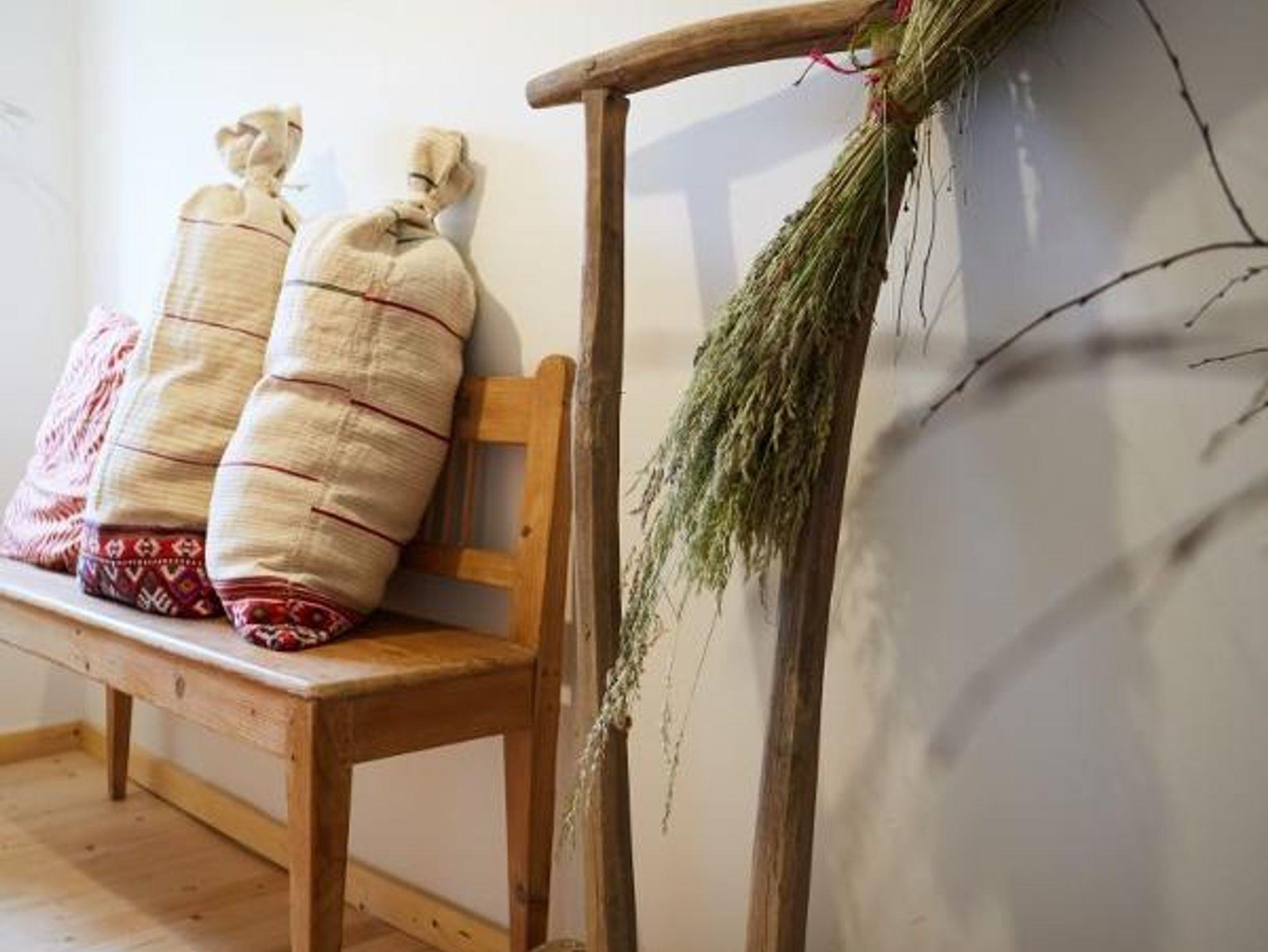 Alles im Haus ist bewußt schlicht und zurückhaltend: liebevoll ausgewählt bilden modernes Design, alte Bauernmöbel und kreative Objekte ein entspannendes, einladendes Miteinander. Die Natur findet sich auch hier im Hausinneren: leuchtende Kränze, Vasen voller duftender Gräser und Blumen zieren praktisch jeden Raum.