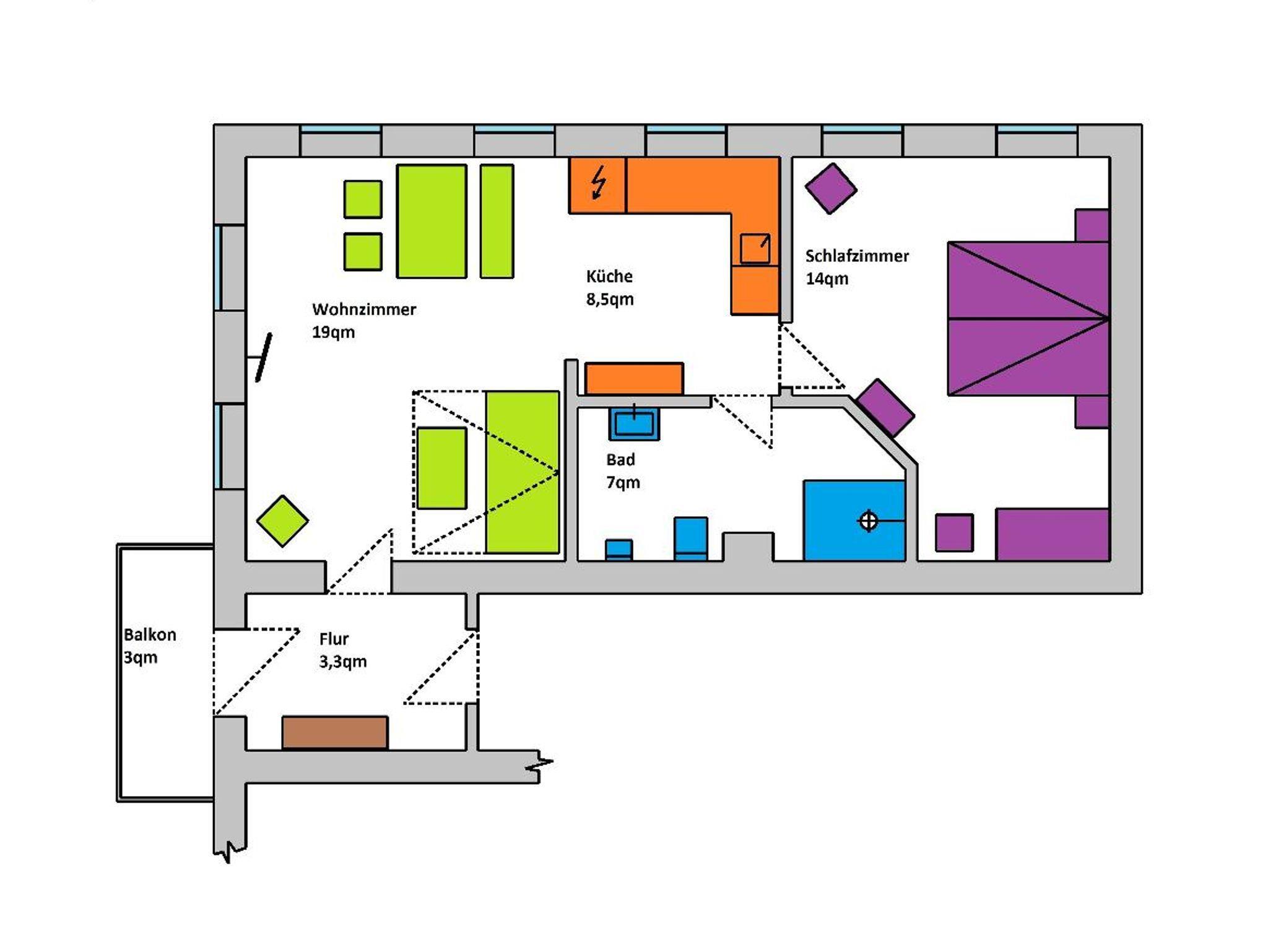 Größe ~55 qm / für max. 4 Personen / Etage 1.OG / Ausrichtung Süd- West