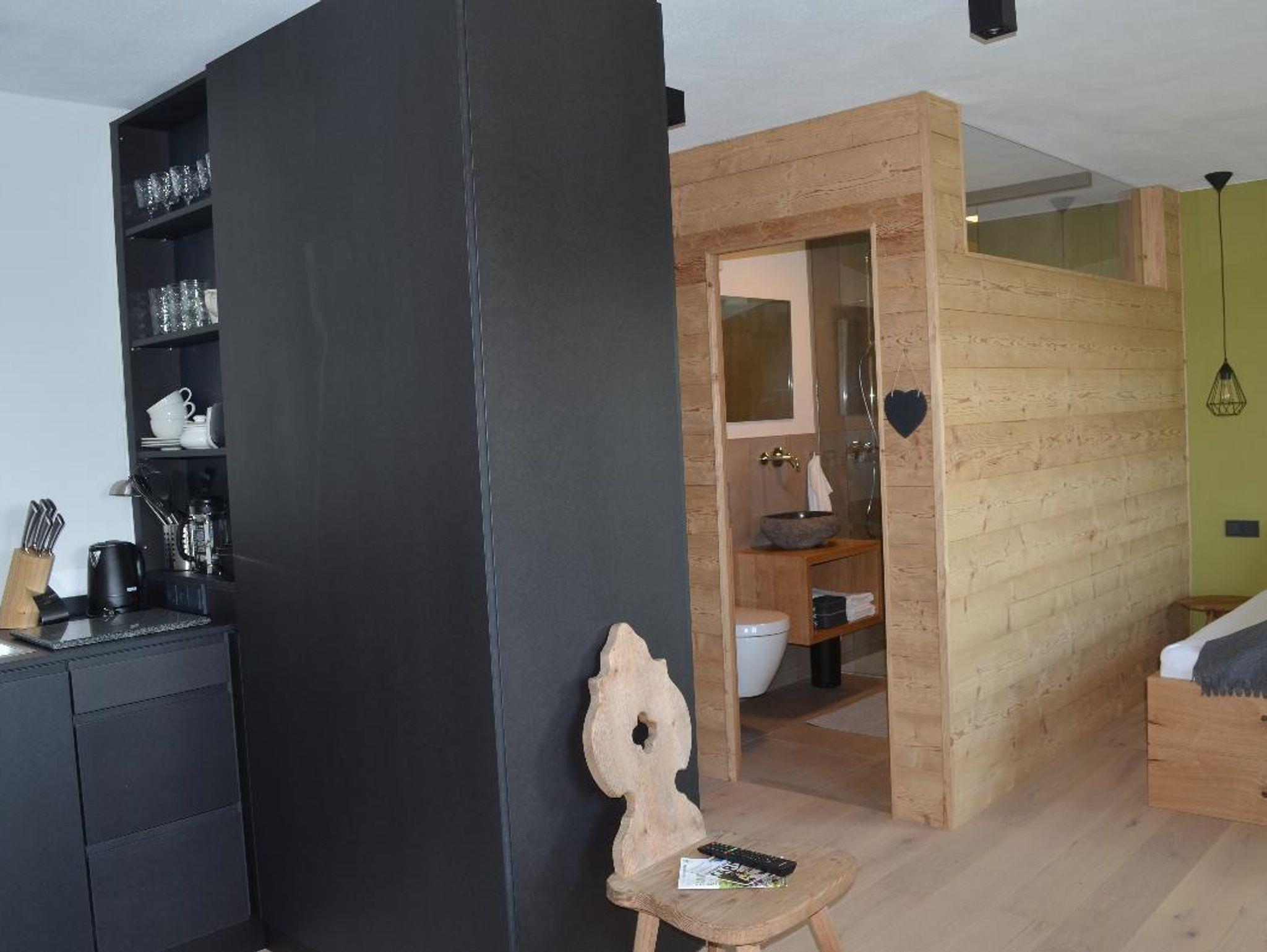 Das DESIGNERLOFT für ZWEI ist 26qm groß und für 2 Personen ausgelegt. Sehr gut geeignet auch für junge Familien mit einem Baby bzw. Kleinkind. Im hellen Wohnschlafraum steht ein bequemes Doppelbett (auf Anfrage gerne mit zusätzlichem Kinder- bzw. Babybett). Die schöne Küche ist mit Wasserkocher, Kühlschrank und Kaffeebereiter (Bodum) ausgestattet. Außerdem befindet sich im Wohnschlafraum ein TV, Esstisch und zwei Sessel. Das geräumige, moderne Bad besteht aus Dusche, WC und Fön.