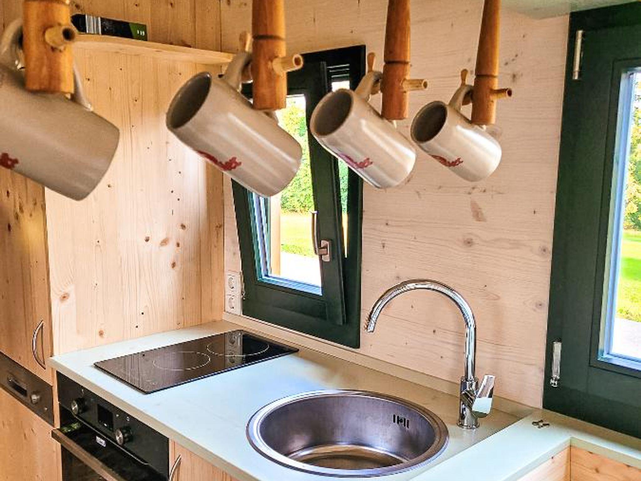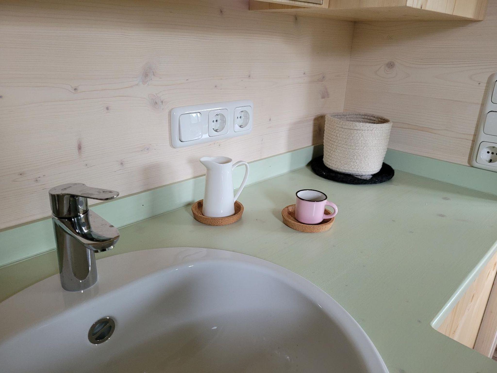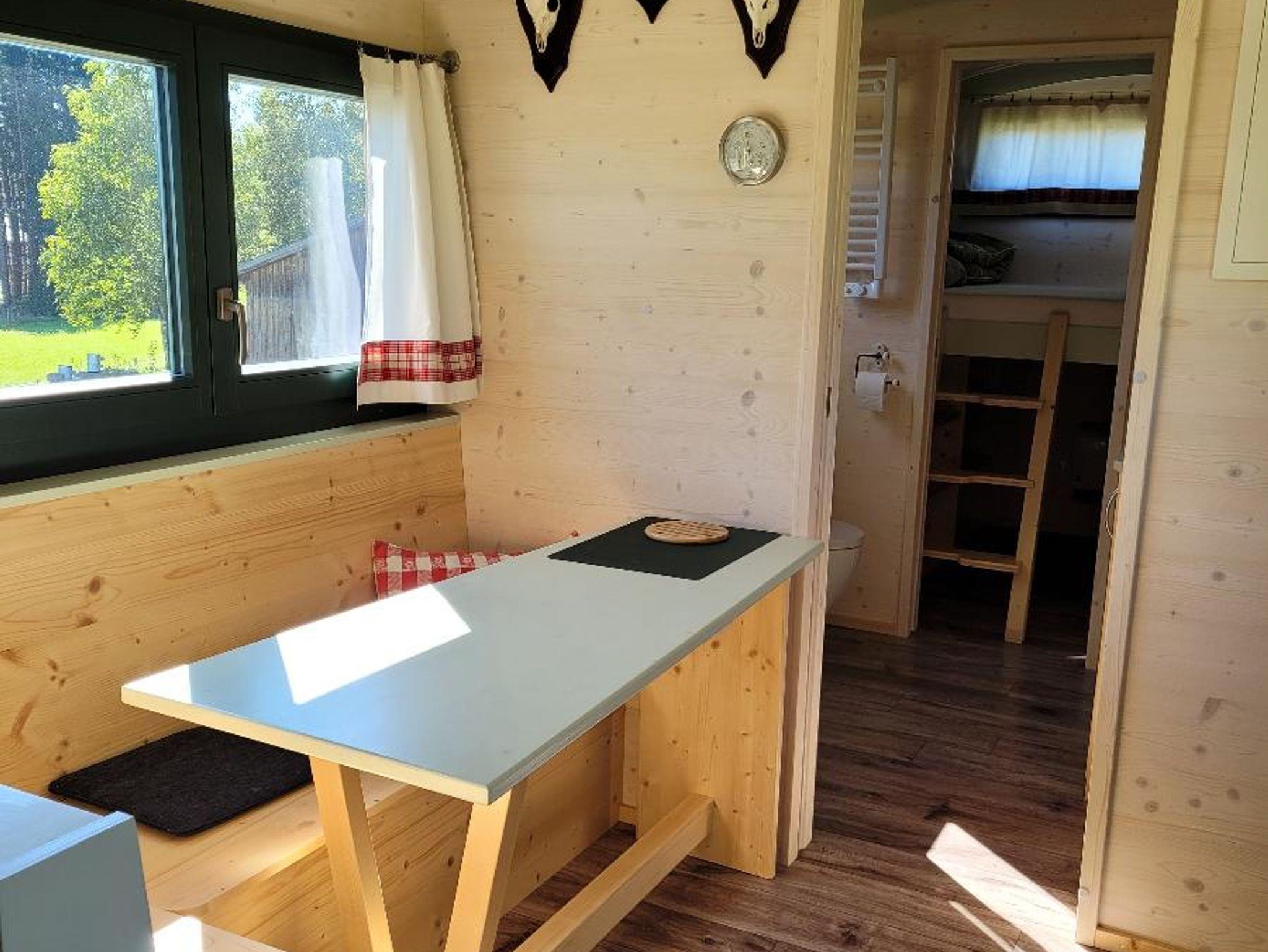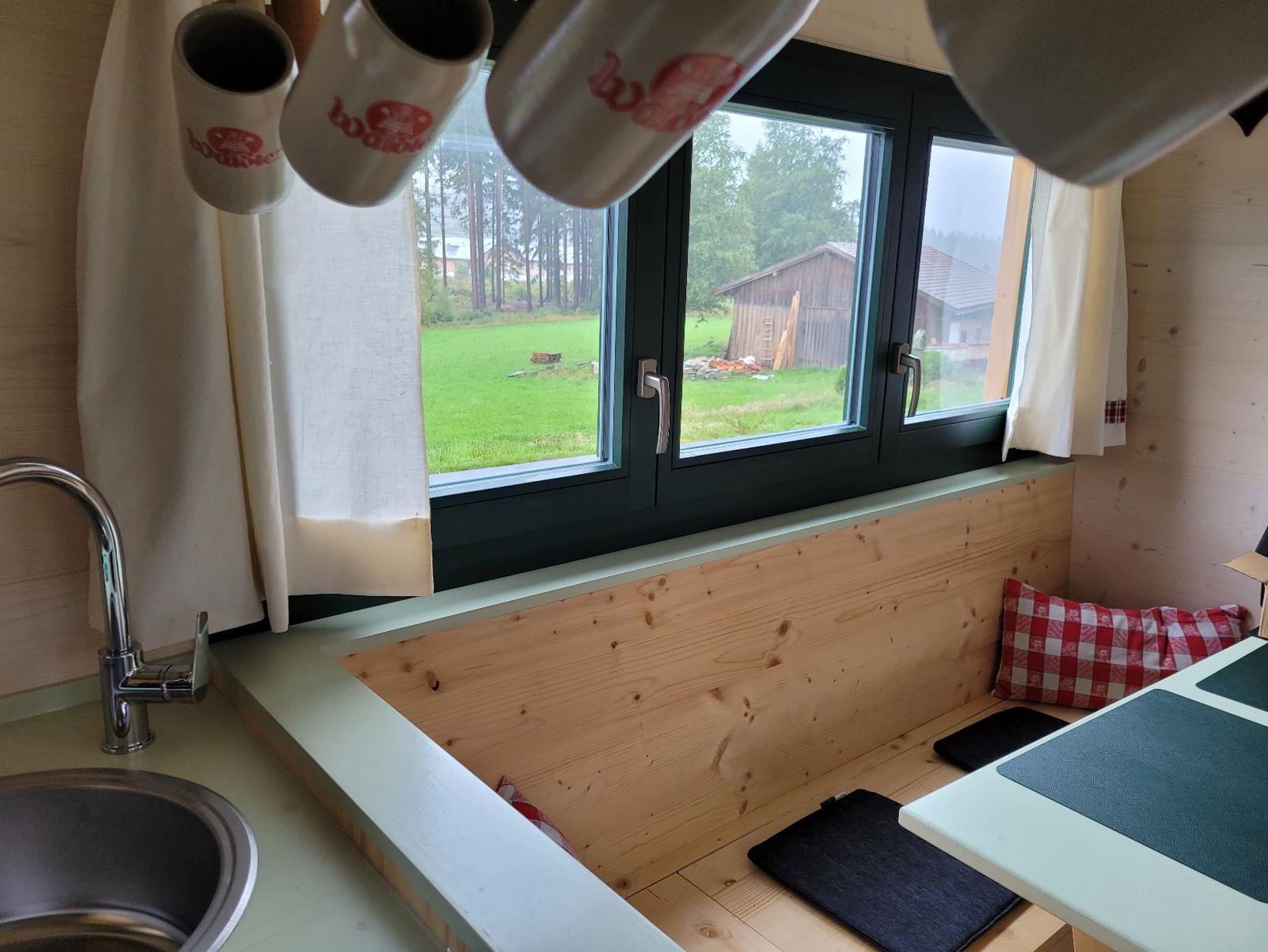 Der Woidwogn verfügt über Wasser-/Stromanschluss, elektrischer Heizung, sowie einem kleinem Holzofen im Wohnbereich. Gratis WLAN und Streaming-TV im Elternschlafbereich sind ebenfalls vorhanden.