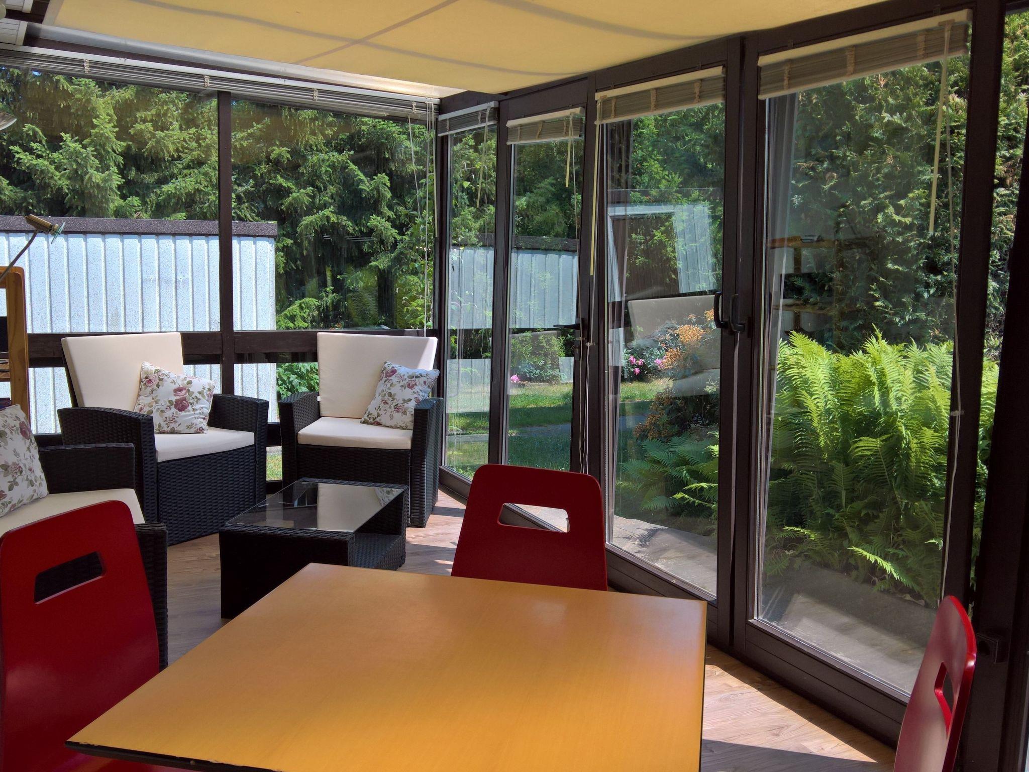 There is plenty of space for two people. It is possible to use the sofa bed in the living room if required. The bedroom has plenty of cupboards and a wide double bed. There are also a fully-equipped kitchen, a bathroom and a generous conservatory, for a perfect holiday.