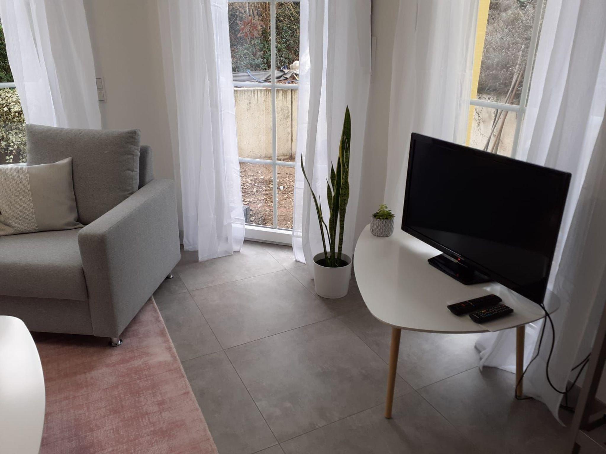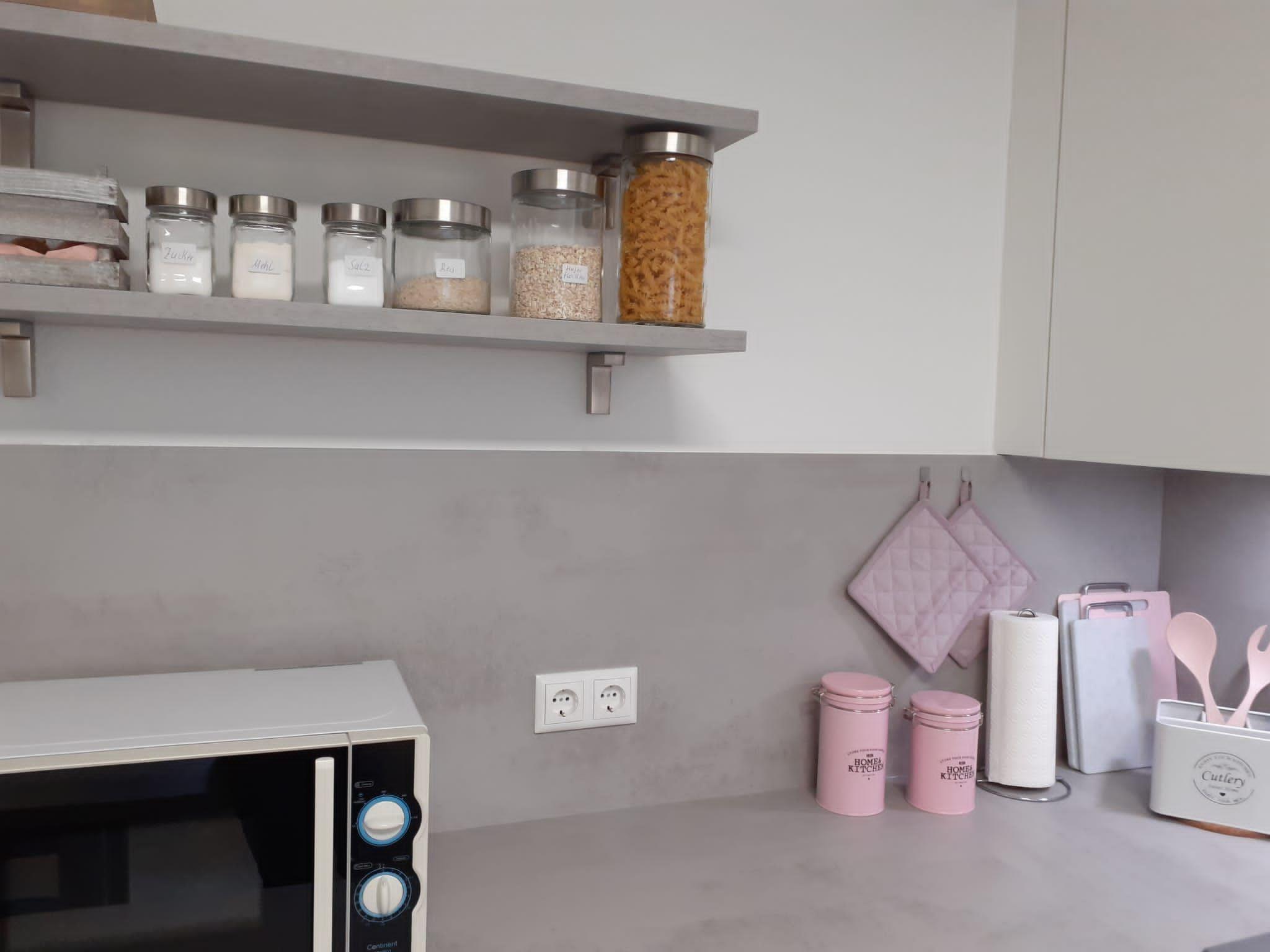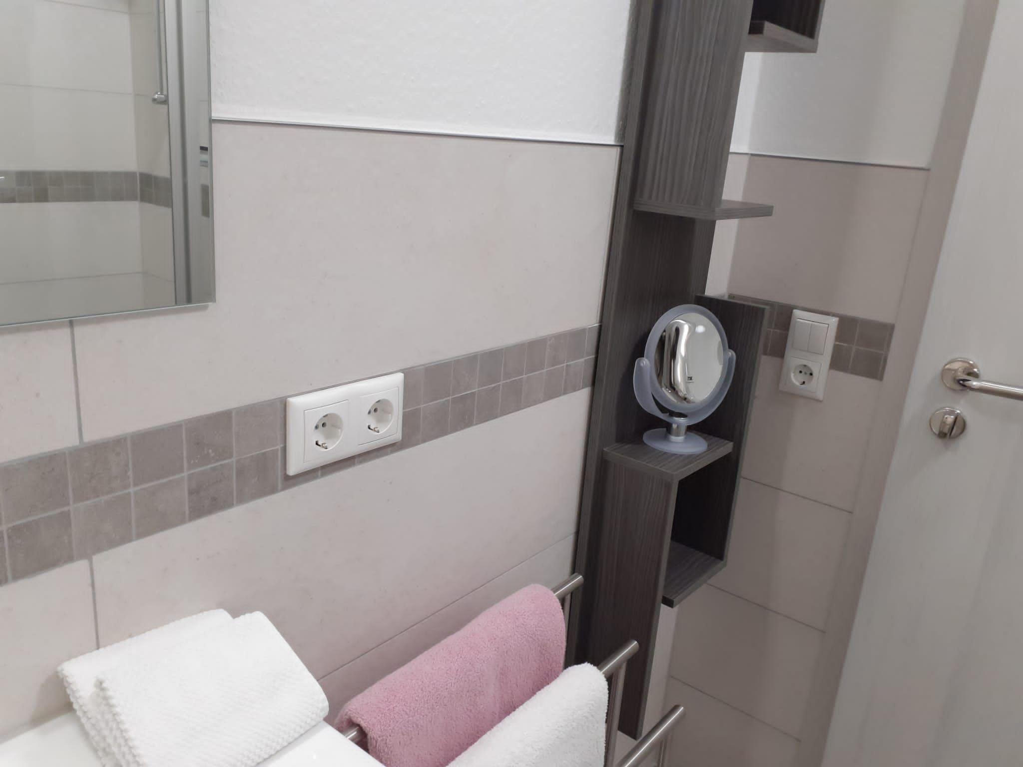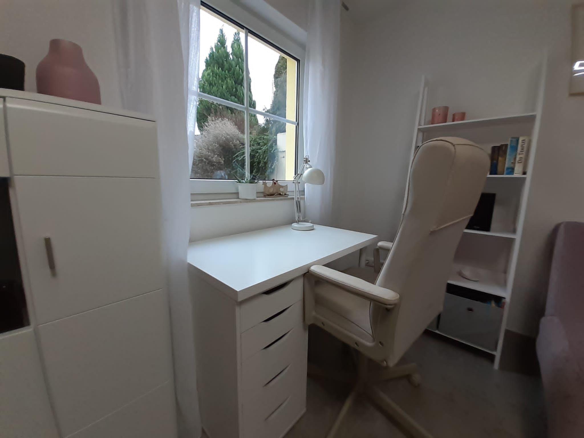 The beautiful and cosy basement flat is located in a quiet side street (play street) in the Obergartzem district. The holiday flat was completely renovated and refurbished in spring 2023. The house itself was completed in 2000. In addition to the hallway, shower room and kitchen, the flat has a bedroom with two single beds and a sofa bed in the living room (sleeping area 1.4 x 2 m). The living room has a bay window with 5 floor-to-ceiling windows facing the large outdoor terrace. The terrace itself is sheltered and offers enough space to spend time outdoors. There is a barbecue, a lounge set, two sun loungers and a parasol on the terrace.
