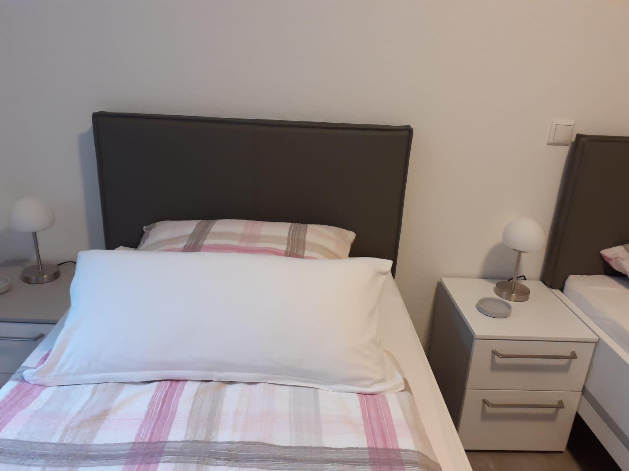 Other bedroom furnishings: In addition to two single beds with bedside tables and a 4-door wardrobe, the bedroom has a small bedside table and, in addition to the usual lighting, a floor lamp.