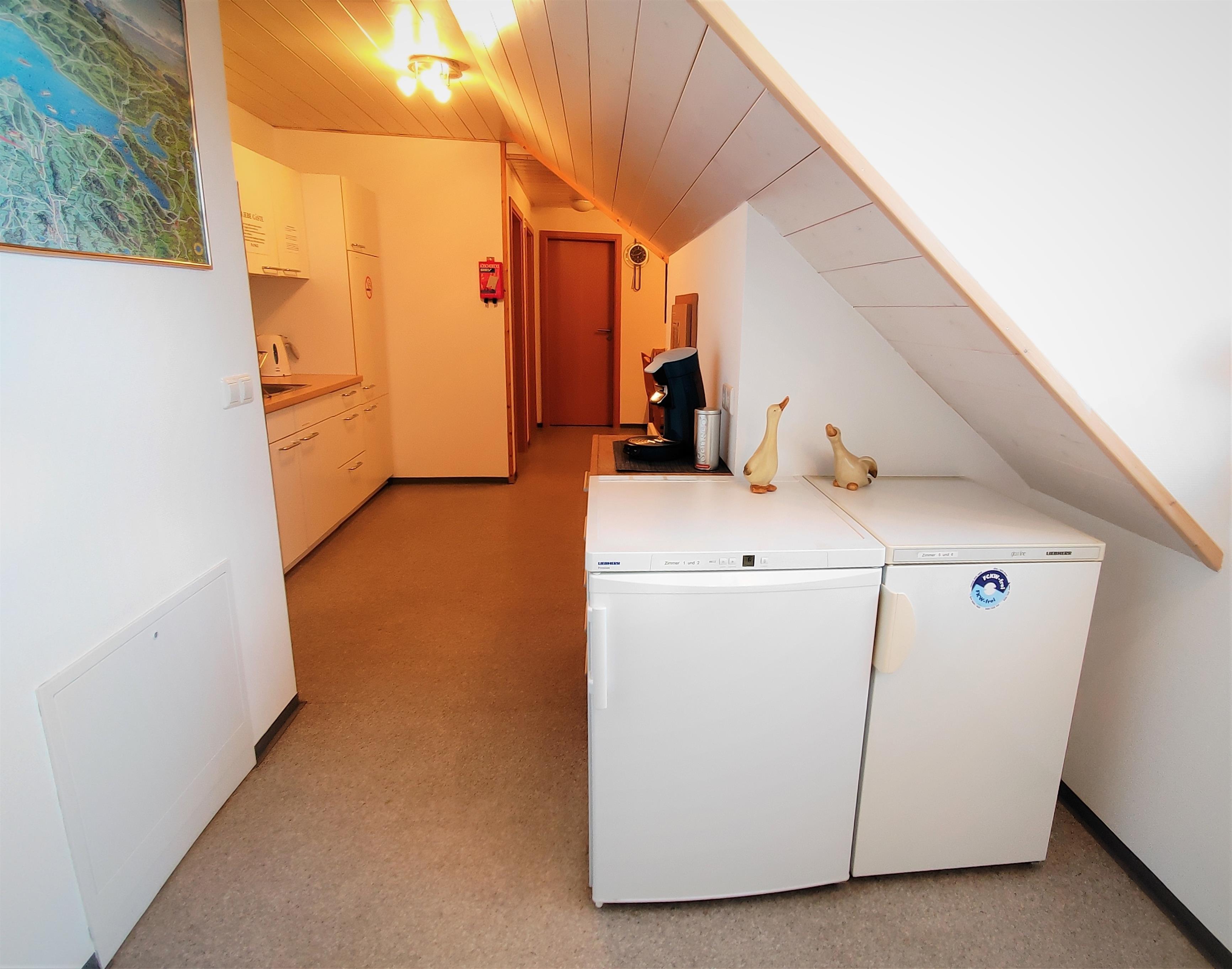 Wir bieten Ihnen ein Einzelzimmer, ein Doppelzimmer und zwei Dreibettzimmer mit Gemeinschaftsküche. Alle Zimmer sind ausgestattet mit DU/WC und TV. Für Ihren Familienurlaub bestens geeignet, wenn jeder sein eigenes Zimmer als Rückzugsort bevorzugt.