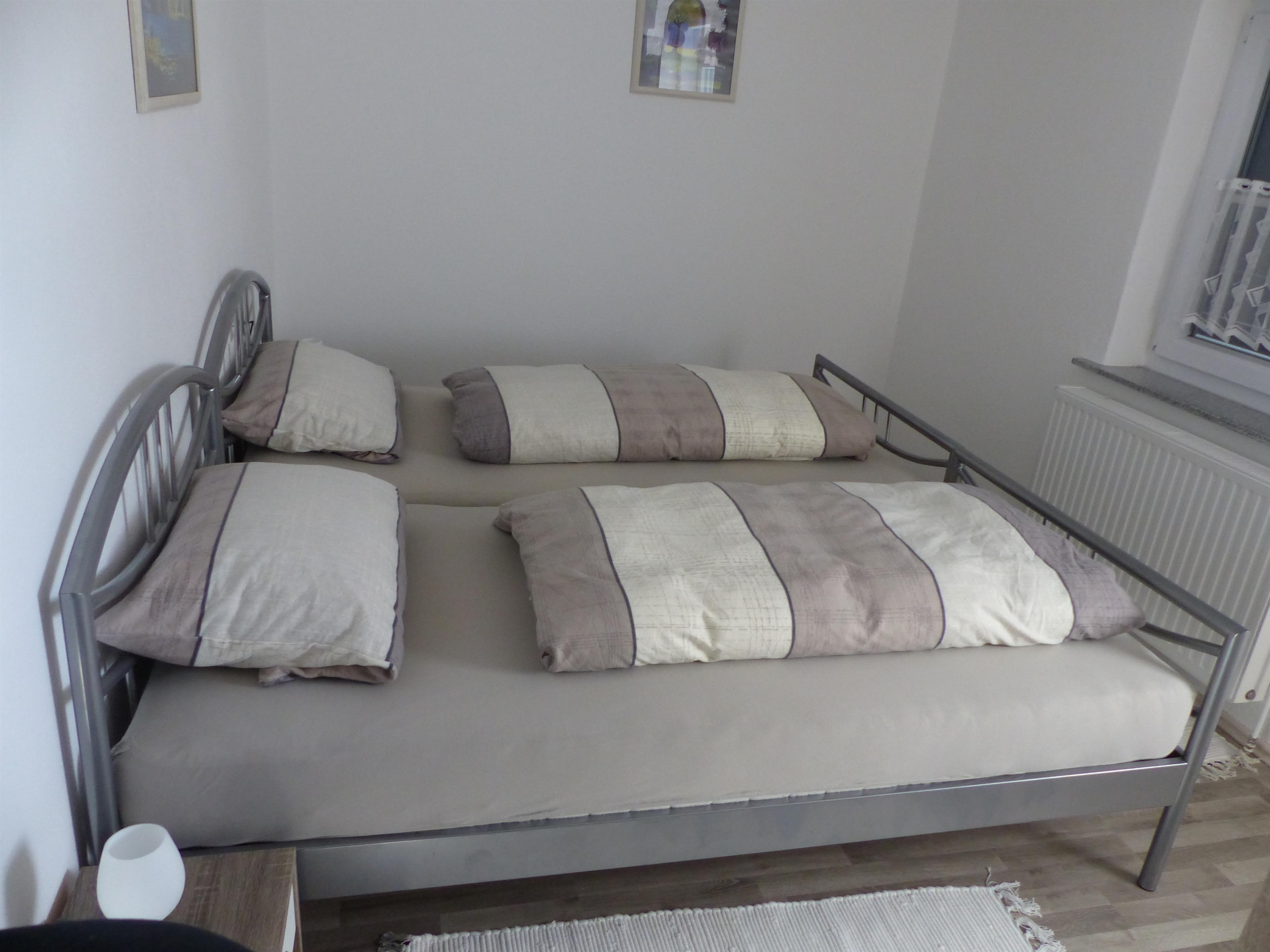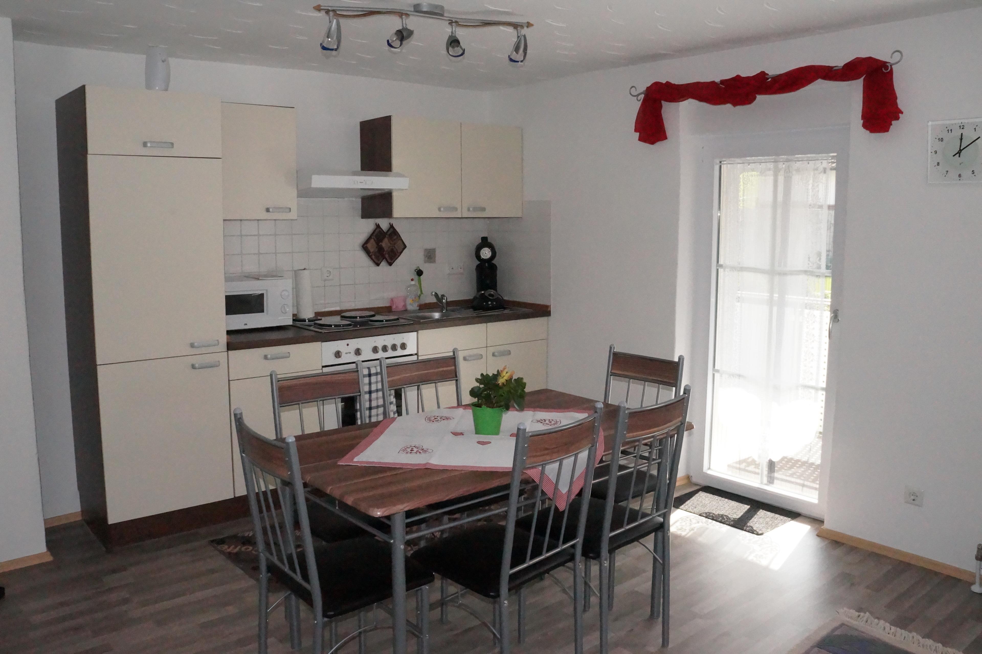 Die Ferienwohnung 1, mit Balkon, befindet sich im Erdgeschoss des Hauses und verfügt über 2 separate Schlafzimmer mit je einem Doppelbett welche jeweils zu zwei Einzelbetten umfunktioniert werden können. Bitte teilen Sie uns bei der Buchung mit, welche Variante Sie bevorzugen. Im Badezimmer befinden sich Badewanne und WC. Der große Wohnraum mit Essecke und voll ausgestatteter Küchenzeile lädt zum Verweilen ein.