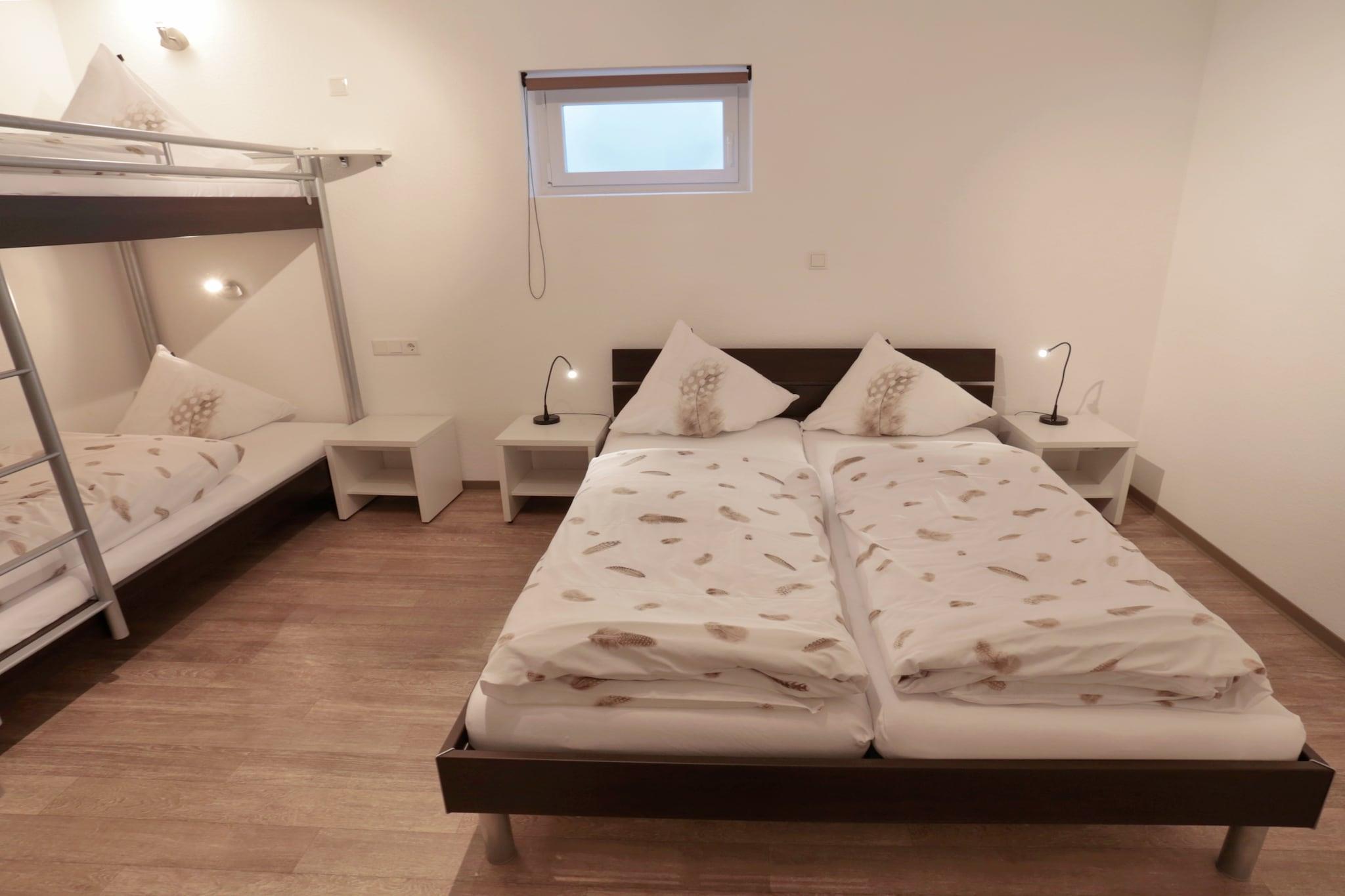 Denne romslige 7-roms villaen ligger i den rolige fjellandsbyen Küstelberg (Medebach), og tar imot opptil 18 gjester, noe som gjør den ideell for store familier eller gruppeferier. Boligen har en balkong, privat hage og en terrasse på 70 m², perfekt for å nyte de frodige omgivelsene. Inne vil gjestene finne flere oppholds- og spiseområder, to kjøkken og fire bad – noe som sikrer komfort og privatliv for alle. Regionen ligger i nærheten av Winterberg og Willingen, og tilbyr aktiviteter året rundt, inkludert skigåing, fotturer, sykling og høye taubaner. Medebach kan skilte med 140 km med sykkelstier og 500 km med turstier, med restauranter i nærheten og butikker bare 6 km unna. Barn kan kose seg med lekeutstyr, sandkasse og bordtennis, mens voksne slapper av i den fredelige hagen. Parkering er tilgjengelig, og nærmeste flyplass ligger 70 km unna. Boligen egner seg ikke for fester eller ungdomsgrupper.