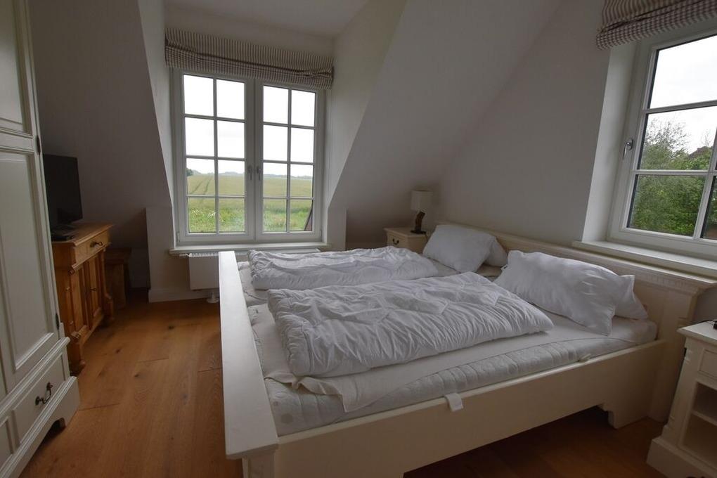 Die moderne Doppelhaushälfte in Morsum mit erstklassiger Ausstattung und hochwertiger Einrichtung ist nach Süden ausgerichtet und offenbaren einen unverbaubaren Blick über Wiesen und Felder.