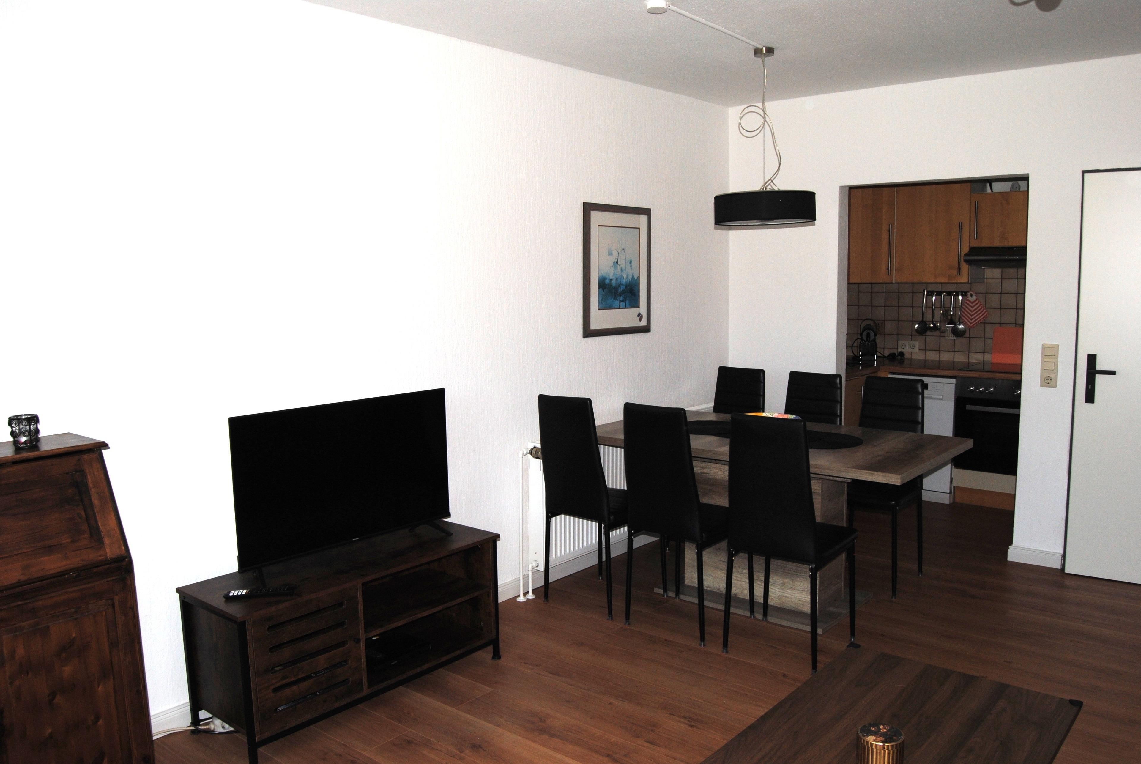 Das Haus hat im Erdgeschoss ein Wohn-Esszimmer mit offener Küche, Sat-TV mit 43 Zoll Smart TV, DVD Player, ein geräumiges helles Bad und einen Abstellraum. Die Küche ist komplett eingerichtet mit Herd, Ceranfeld, Geschirrspüler, Kühl-und Gefrierkombination, Dunstabzugshaube. Zudem finden Sie dort Kaffeemaschine, Toaster, Wasserkocher, und natürlich Geschirr, Töpfe und Pfannen.
