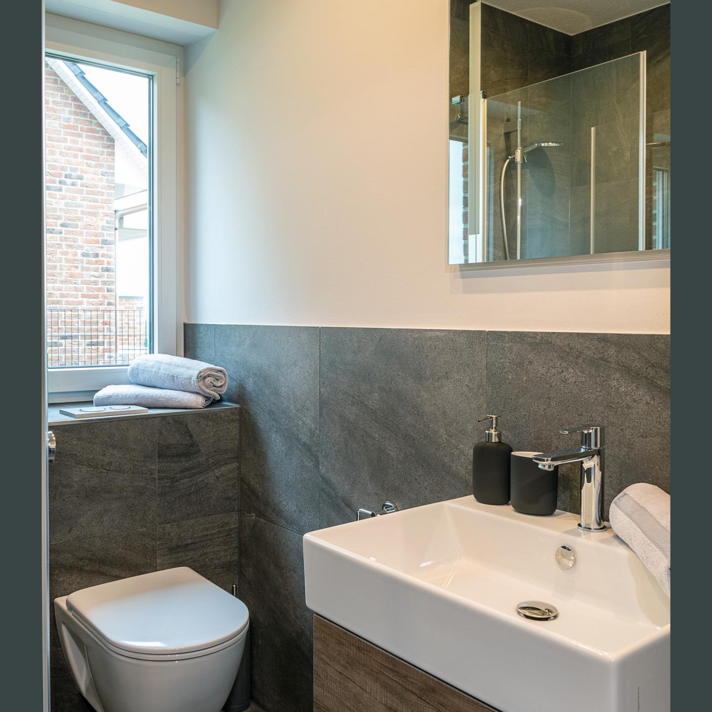 Auf 60 m² finden Sie einen hochwertig eingerichteten Wohn / Essbereich mit einer gut ausgestatteten Küche, sowie ein modernes Badezimmer mit ebenerdiger Dusche.