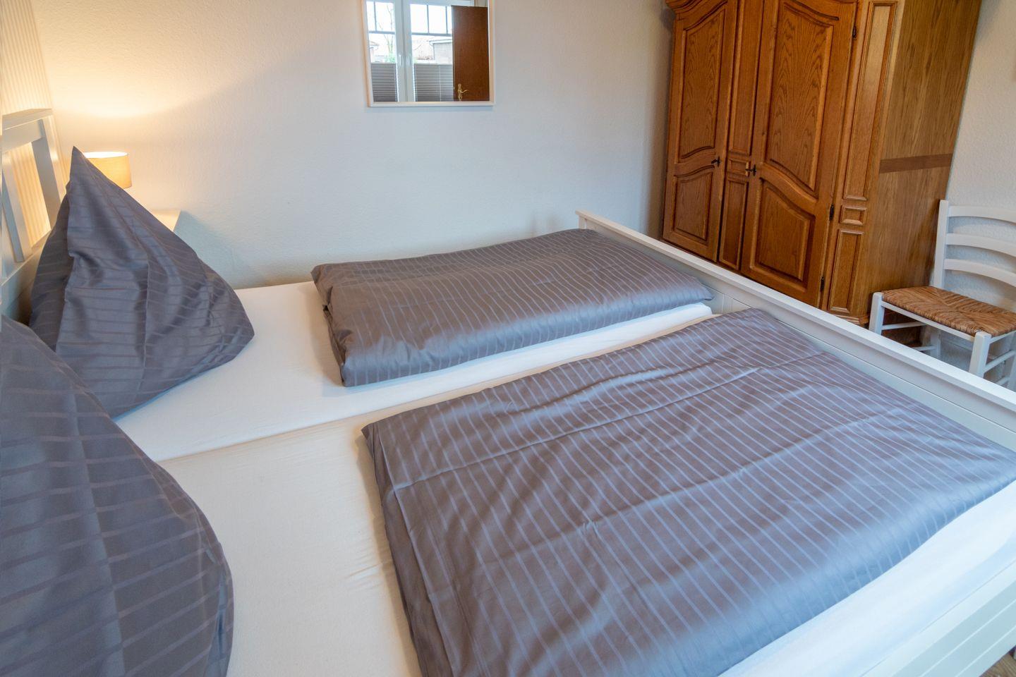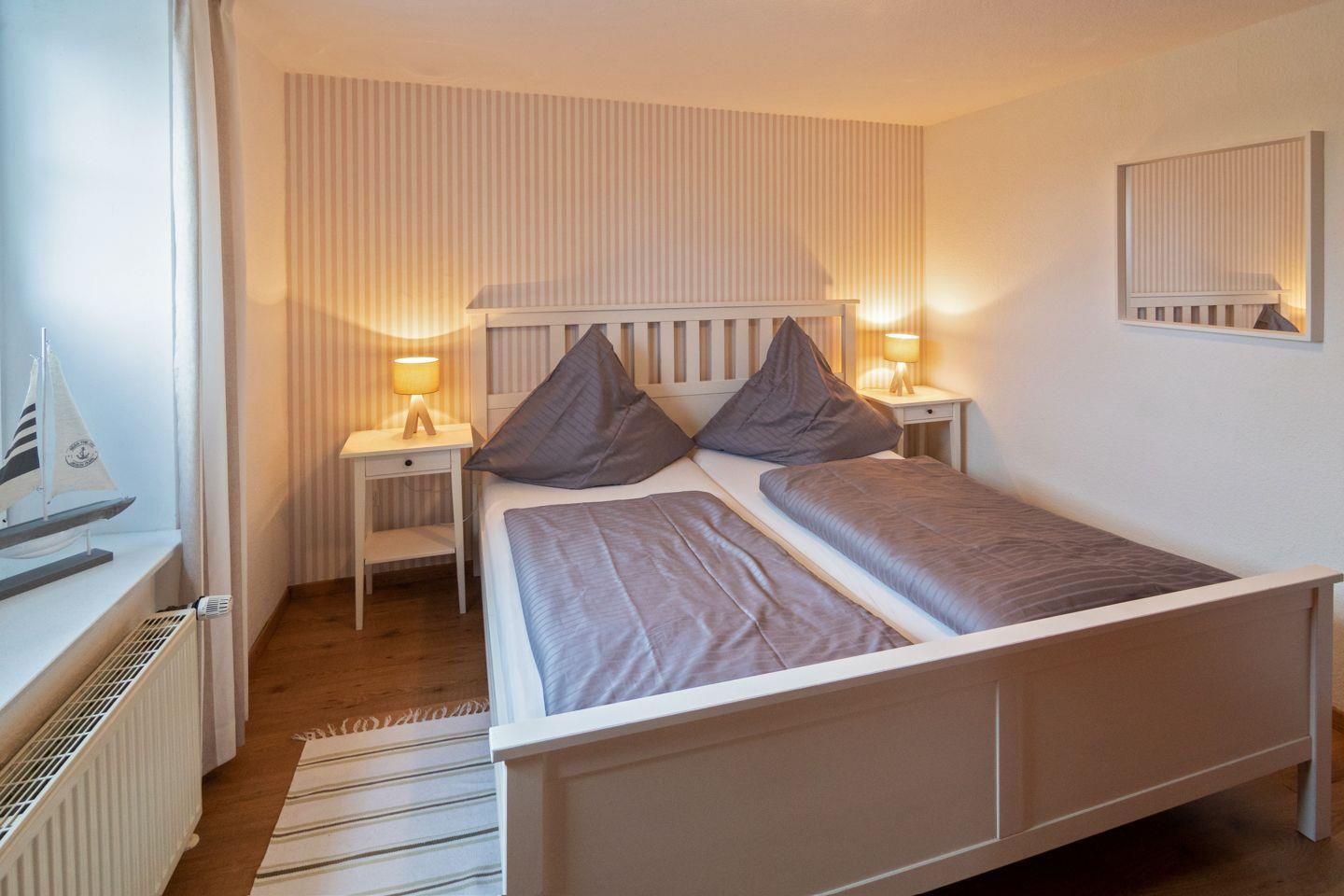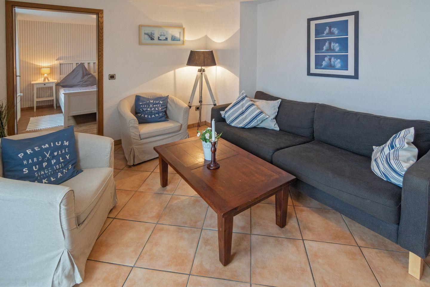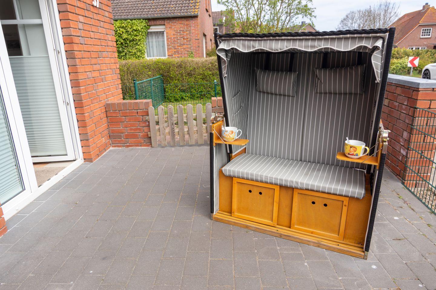 Die Erdgeschosswohnung Strandkorb verfügt über einen großzügigen Wohn- und Essbereich mit angrenzender voll ausgestatteter Küche, zwei moderne Schlafzimmer (mit einem Ehebett und einem 1,60 m Bett (mit geteilten Matratzen)) und ein Duschbad mit WC. Zur Wohnung gehört eine gemütliche Terrasse mit Strandkorb zum Entspannen. Das WLAN steht Ihnen kostenfrei zur Verfügung. Ihren PKW können Sie an der öffentlichen Dorfstrasse parken.