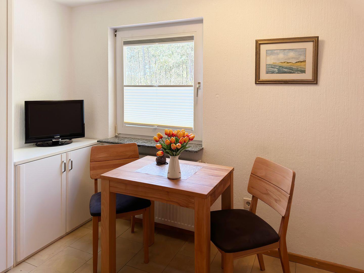 Die Wohnung verfügt über 1 Wohn- Schlafraum mit WLAN, Sat-TV und offener Küche, 1 Badezimmer mit Dusche und WC; Garten zur Gemeinschaftsnutzung mit Gartenmöbeln (April bis Oktober), PKW-Stellplatz.