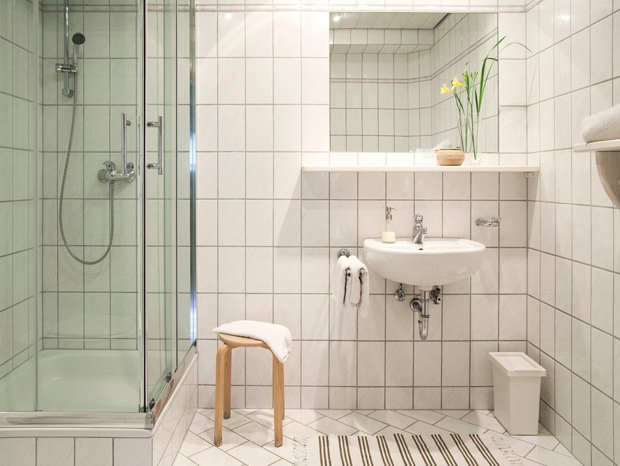 Bad: Mit Waschbecken, Spiegel, Dusche und natürlich frischen Handtüchern.