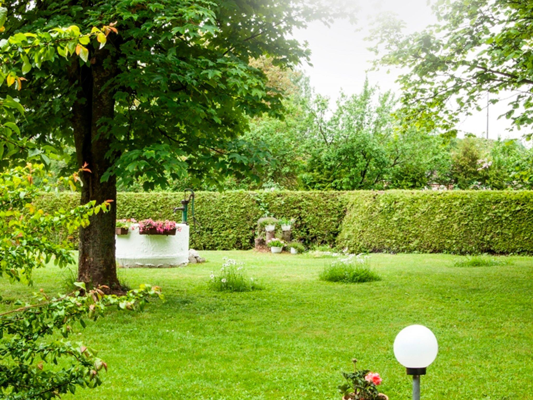 Unser Haus mit Garten liegt in ruhiger Ortsrandlage, jedoch nur 500 m von den Einkaufsmöglichkeiten entfernt.