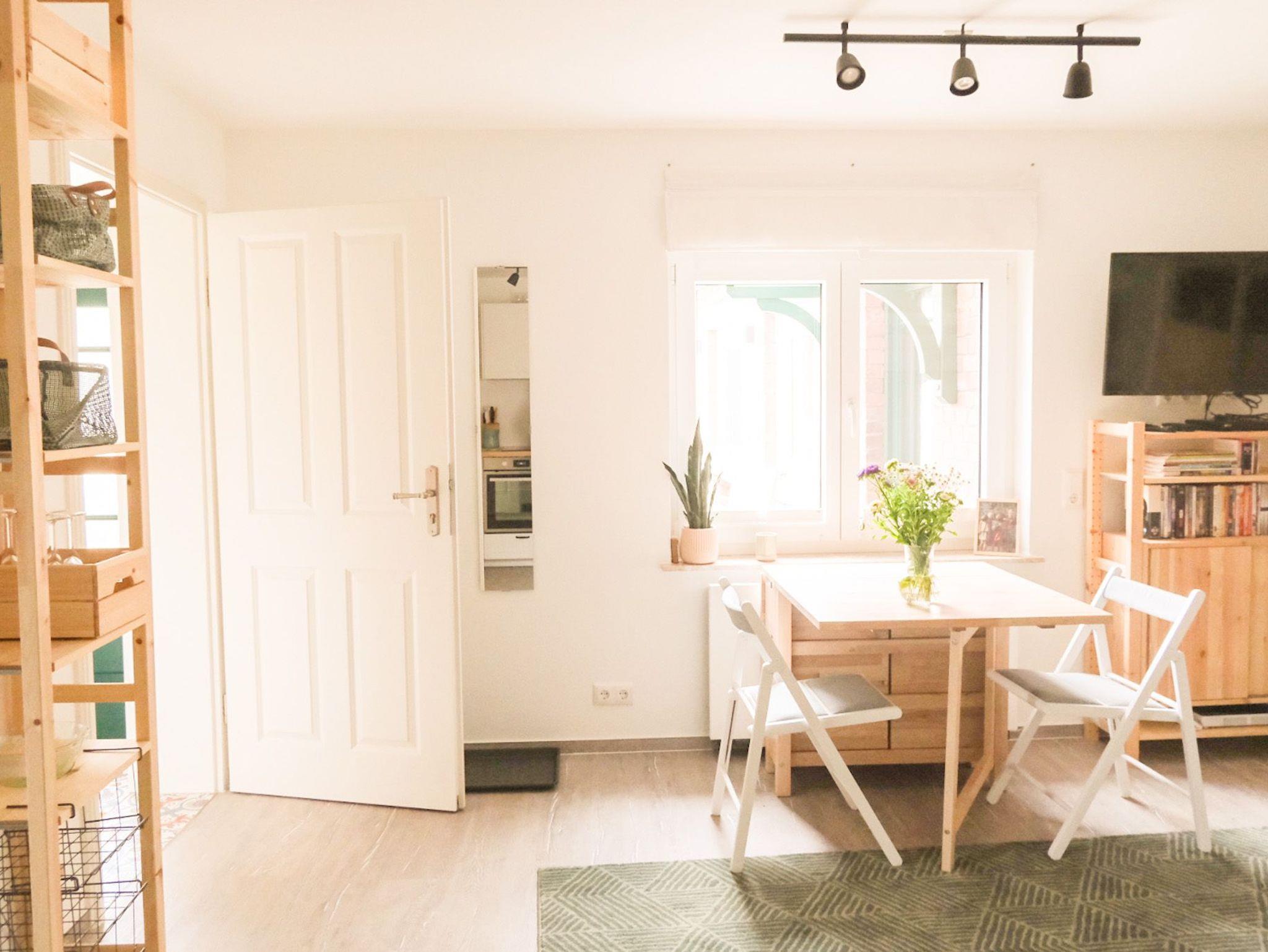 Die Ferienwohnung Dora (30 qm) ist klein, aber fein. Da funktional und geräumig eingerichtet, finden hier 2 Erwachsene ausreichend Platz. Die Ferienwohnung verfügt über ein großes Etagenbett, eine (Schlaf-)Couch, eine offene Wohnküche und ein Badezimmer mit Badewanne und Dusche. Zugang erhältst du über einen separaten Eingang im Innenhof. Eine Aufbettung für eine weitere Person gegen Aufpreis möglich. Schlafmöglichkeiten: - 1 Zimmer mit Etagenbett (1,40 x 2,00m) und ausklappbarer Schlafcouch (1,40 x 2,00m) Ausstattung: - Smart-TV - Soundanlage (Internet-Radio, AUX, USB, Bluetooth) & DVD-Player - WLAN / LAN (Ethernet) - Küche mit Kühlschrank (inkl. Gefrierfach), Ofen, Herd mit 2 Induktionskochfeldern, Kaffeemaschine, Toaster sowie Geschirr und Besteck) - Heizung - Jalousien - DVDs, Bücher und Lesematerial - Brettspiele