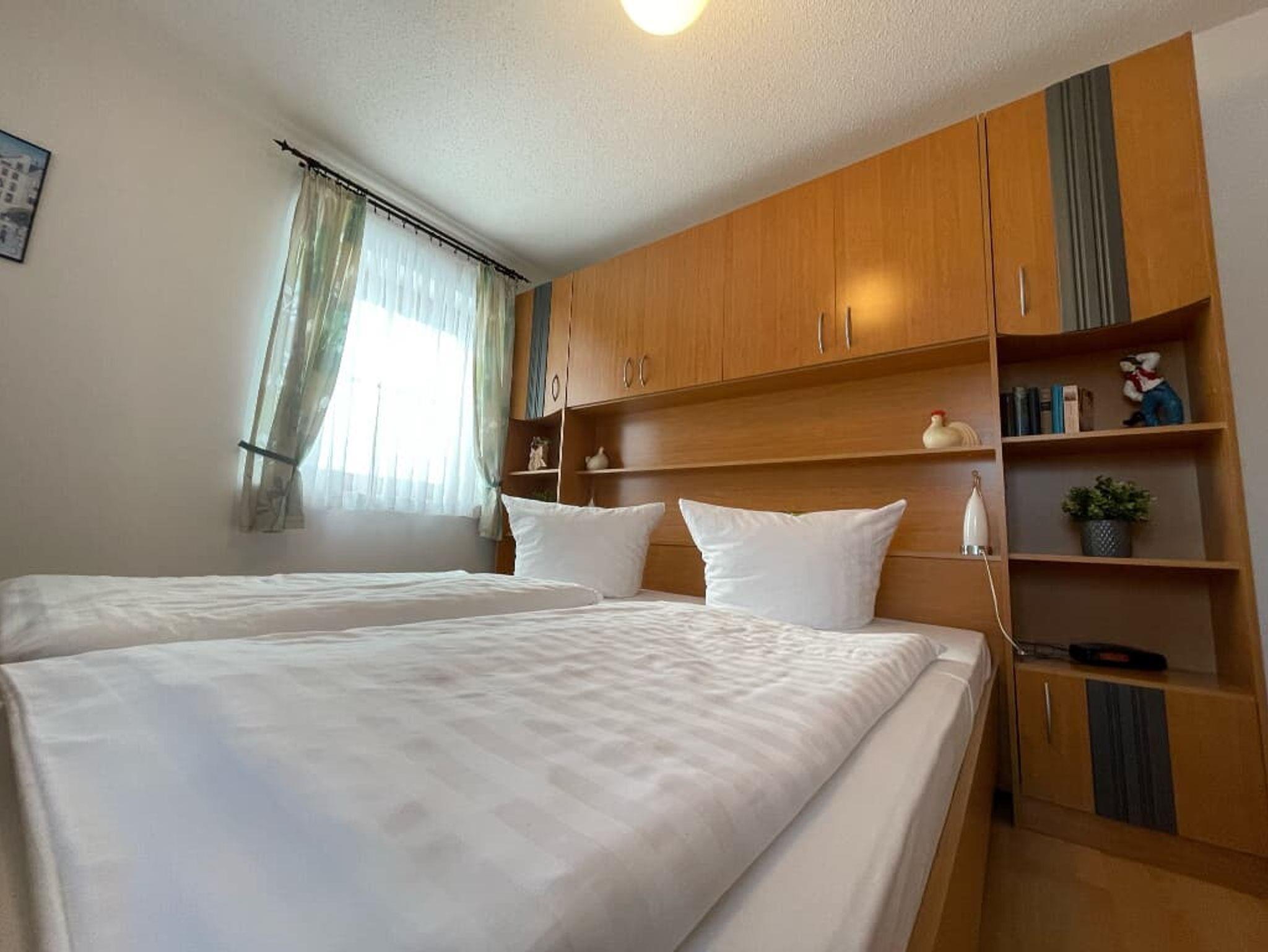 Unsere geräumigen Wohnungen verfügen über Wohn- und Schlafzimmer, vollausgestattete Küche, teilweise Balkon, Bad sowie Gäste-WC, Sat-TV. Im Haus stehen außerdem eine Waschmaschine und ein Trockner zur Verfügung. Im großen Garten finden Sie Liegestühle, eine Sitzgelegenheit und einen Grillplatz. Die Parkplätze direkt am Haus und WLAN nutzen Sie kostenfrei, zwei Garagen stehen auf Anfrage und gegen Gebühr zur Verfügung. Kleine Hunde auf Anfrage und gegen Gebühr.