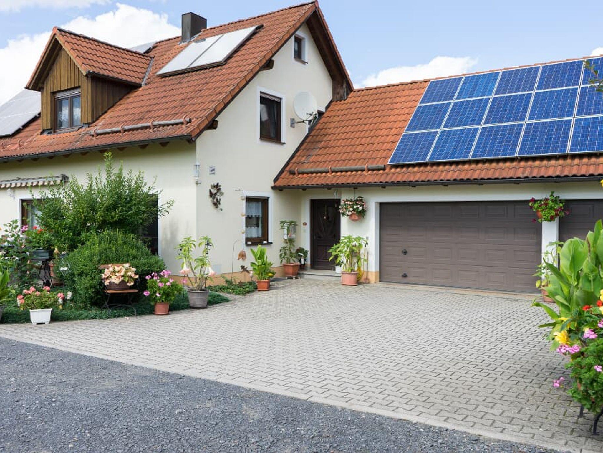 Das im Jahr 1993 erbaute Haus liegt am Ende einer Sackgasse. und verfügt über eine große Einfahrt sowie eine geräumige Garage. Dort haben Sie die Möglichkeit Ihre Fahrräder, E-Bikes oder Motorräder sicher und wetterfest unterzustellen. Die Solaranlage auf dem Dach heizt das Brauchwasser im ganzen Haus. Ebenso fließt ökologischer Strom, der durch die Photovoltaik-Anlage erzeugt wird.