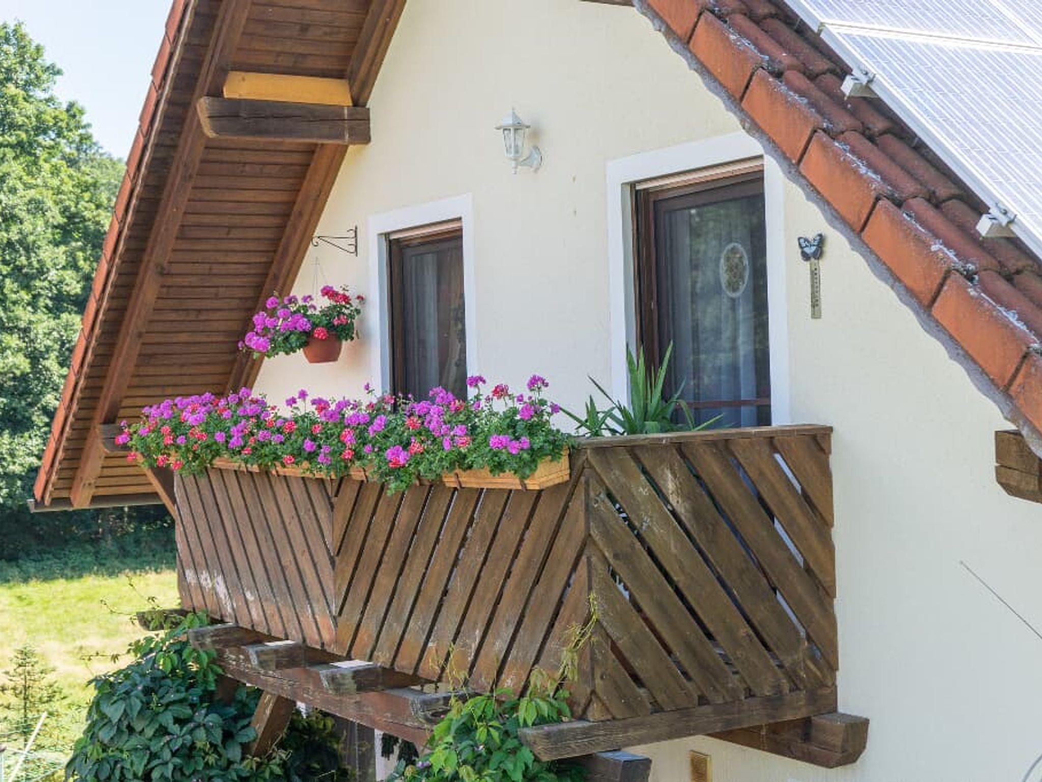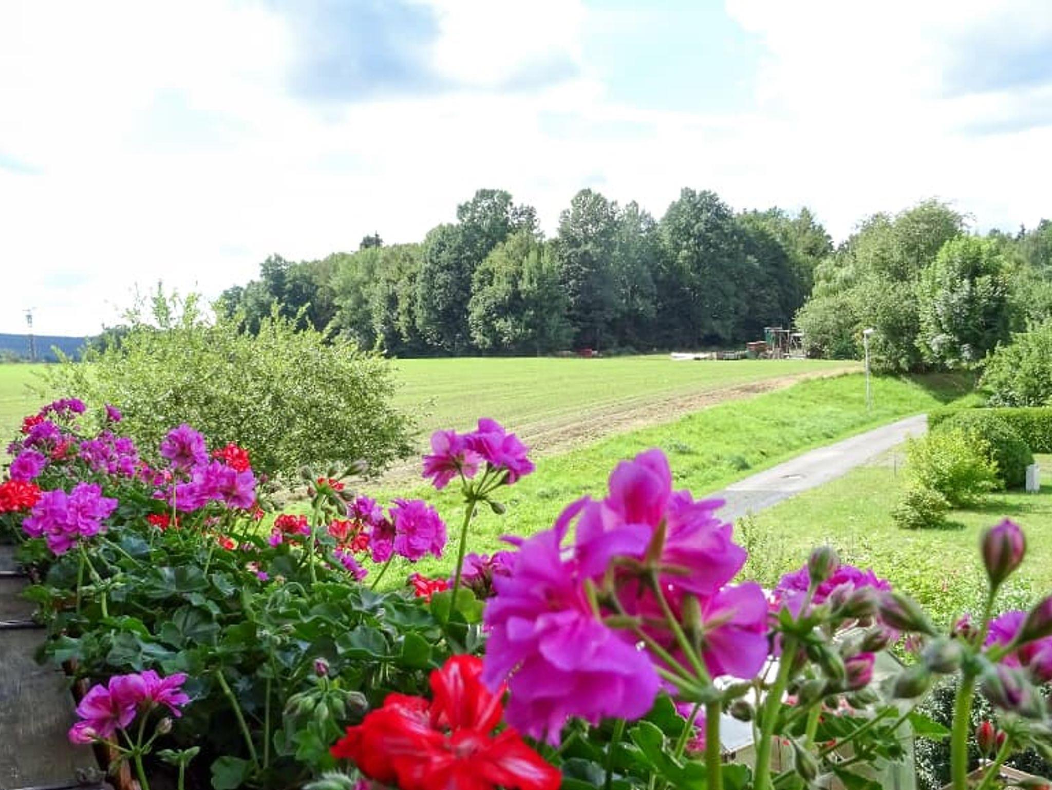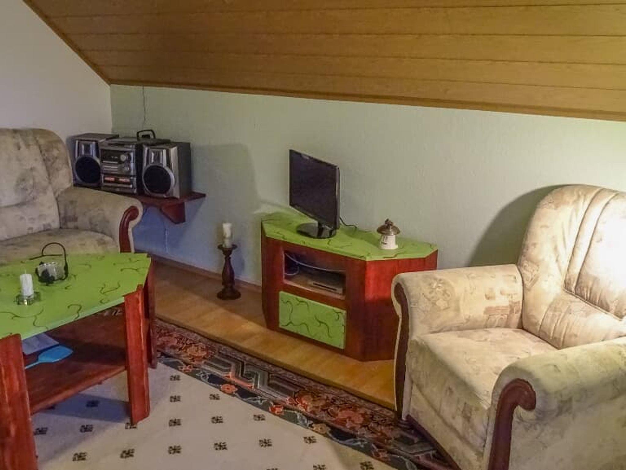 Über das komfortable Wohnzimmer, welches mit einem Flachbild-TV und einer Stereoanlage mit CD-Player ausgestattet ist, erreichen Sie den üppig bepflanzten Westbalkon. Von dort aus haben Sie Sicht auf den kleinen Ort Rothmühle und die umliegenden Wiesen und Wälder.